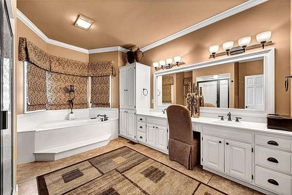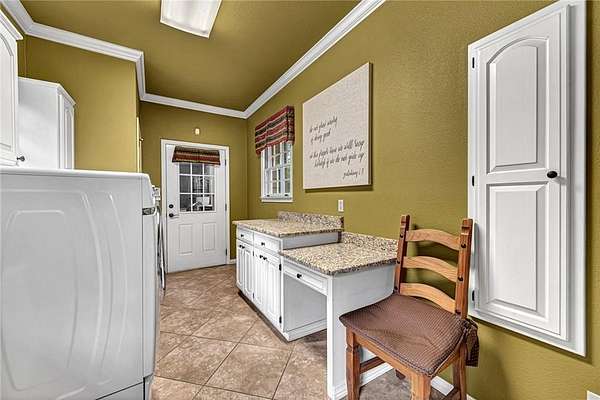 - Attic Storage, Built-In Ironing Board, Built-Ins, Drapes, Eat-in-Kitchen, Granite Counters, Ice Maker Connection, Led Lighting, Pantry, Skylight, Smoke Detector, Split Floor Plan, Walk-In Closets