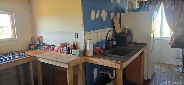 Price improvement!!! Investors pricing!!!! Do the finishing touches on this well built home and keep for yourself, rent, or resell for your profit. Nice location on the north side of the town of Blanca! You can't beat the views!! Wake up to the breathtaking view of Mt. Blanca in this 1008 sq. ft. home waiting for your personal touch. This well-built house features 2 bedroom/bonus room, 1 bathroom, a living room with a unique bar area, and a minimalist kitchen. There's also an attached bonus room that can be the second bedroom or additional living space, along with an adjoining utility room. Relax and unwind on the covered front porch and enjoy the serenity and peacefulness of the valley. Additional outdoor features include a fenced chicken coop, a walk-in greenhouse built 7 feet into the ground for excellent stability, and a gated circular driveway with fencing along the road frontage. The current owner rents out space on the property for overnight dry camping guests at $30 per night, offering an opportunity for extra income. This home has incredible potential, with only a few finishing touches need. Call listing agent today to schedule a showing!
