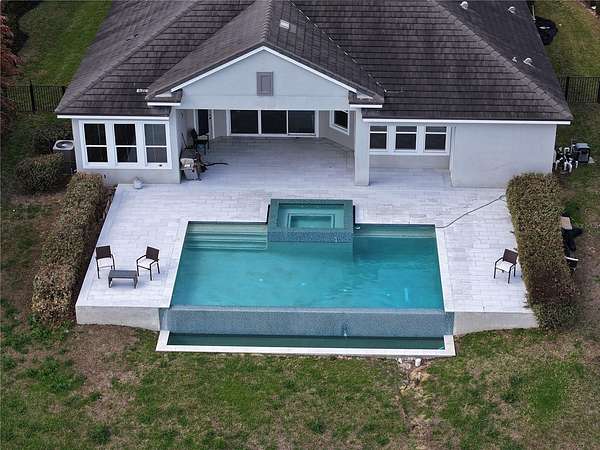 Under contract-accepting backup offers. One or more photo(s) has been virtually staged. Beautiful Winter Garden lakefront home with 270-degree lake views, a resort pool, and location, location, location. This one-story, four-bedroom, four-bath open floor plan home features a modern infinity-edge pool overlooking stunning views of Lake Hancock, with an oversized fenced-in backyard. Just three minutes to everything in Hamlin.