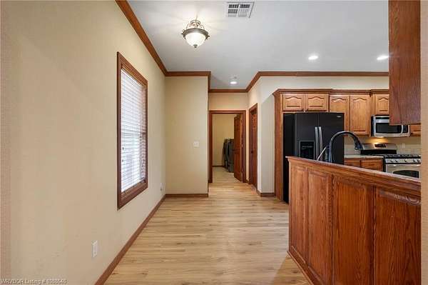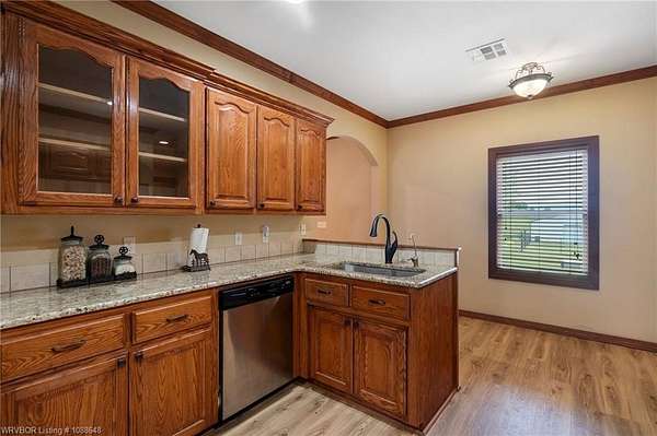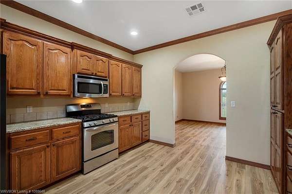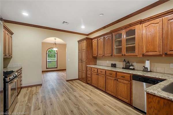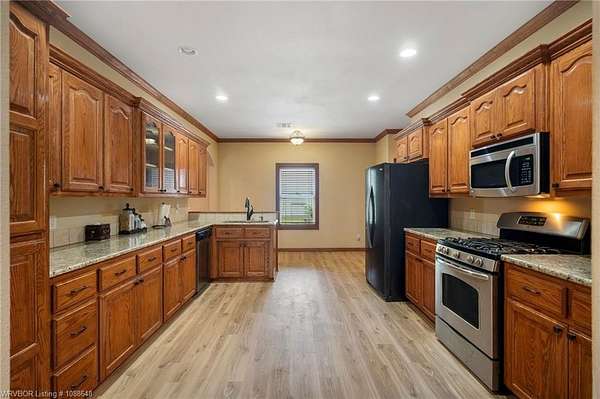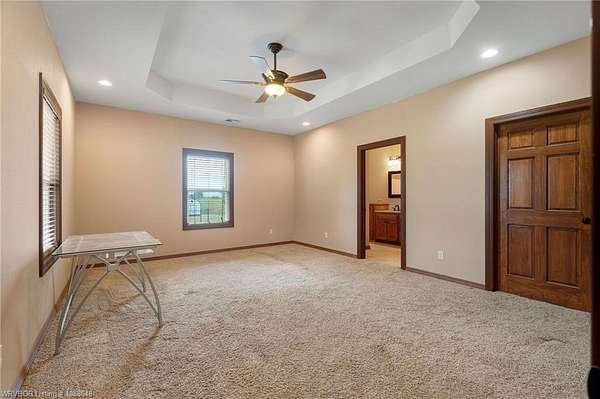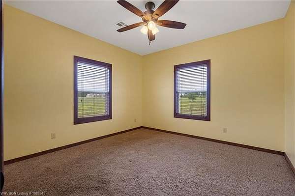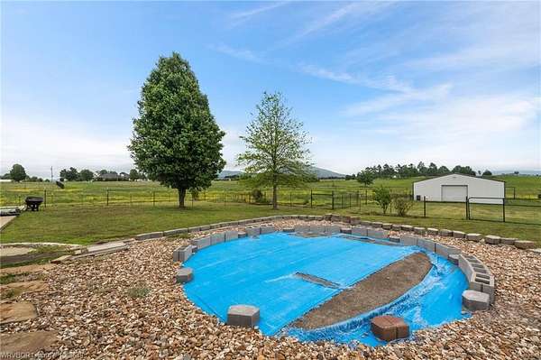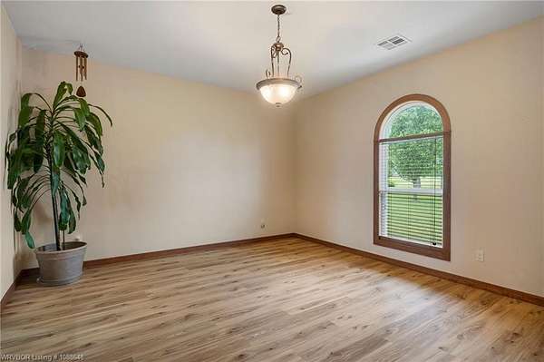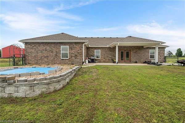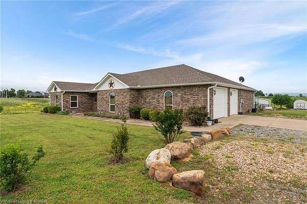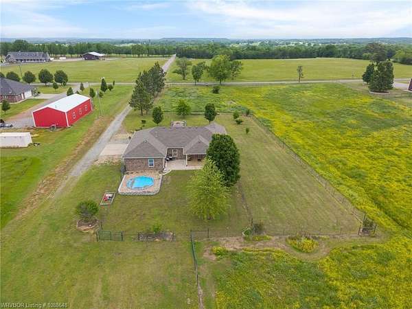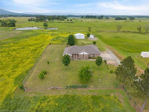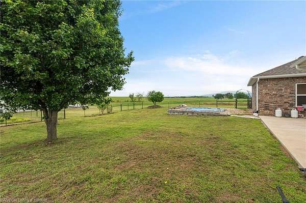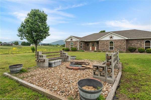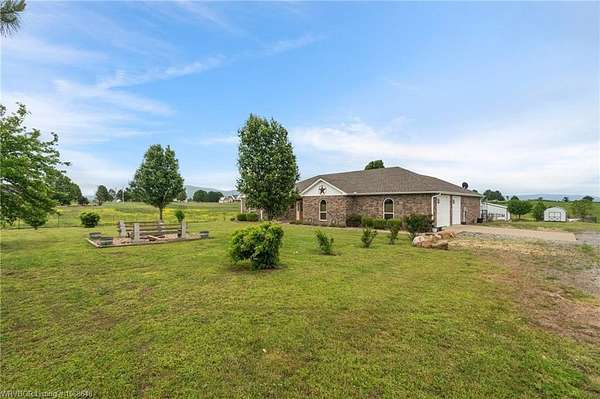 Enjoy peaceful country living with a view of Sugarloaf Mountain on this beautiful 5-acre property just 10 minutes from Poteau and 30 minutes to Fort Smith, AR. This well-maintained 3 bedroom, 2 bath brick home offers 2,085 square feet with a desirable split floor plan designed for both comfort and functionality. The spacious living room features a cathedral ceiling and gas log fireplace, creating a warm and inviting focal point, and opens directly to a concrete patio where you can take in the mountain views. The oversized dining room provides plenty of space for gatherings, while the kitchen is a standout with custom cabinetry, granite countertops, abundant workspace, and exceptional storage. All appliances remain, including the washer and dryer, making this home truly move-in ready. The primary suite offers a large walk-in closet and an en-suite bath with double vanities for added convenience. Ceramic tile flooring in the bathrooms adds durability and style. Outside, the property is fully fenced for livestock and thoughtfully set up for country living with a metal barn featuring horse stalls and a tack room. There's also a fire pit area for relaxing evenings under the stars and plenty of room for a garden. If you've been looking for a place that blends comfortable living with wide-open space and scenic views, this property delivers the best of both worlds.