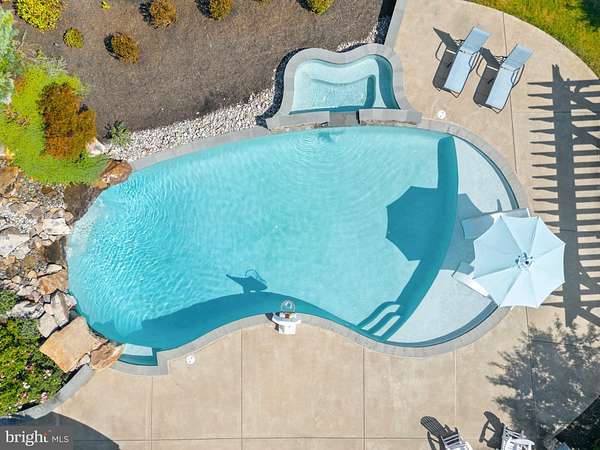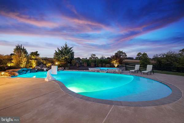 VIEWS VIEWS VIEWS! Exquisite 15-Acre country estate with pool, breathtaking sunrise AND sunset mountain views and resort-style living. Perched on a scenic hilltop that backs to 155-acres of conservation land, this gorgeous property offers panoramic mountain vistas, breathtaking sunrises and sunsets, and rolling pastures-- perfect for fall hikes, campfire nights and outdoor gatherings. Here you'll find an elegant stone-front estate complemented by a stunning resort-style saltwater pool w/ hot tub and outdoor entertaining spaces, all within a neighborhood of other large-acreage homes. Located on a quiet cul-de-sac, this property provides privacy and the perfect setting to embrace the surrounding beauty of nature. The outdoor living is truly unmatched-relax by the sparkling saltwater pool with adjoining hot tub, gather around the gas fire pit on cool evenings, or enjoy the dramatic waterfalls and unique jumping boulder that make every day feel like a getaway. Soak up the sun on the large tanning ledge, complete with the option for a built-in umbrella. Backyard oasis would cost $500k to replicate today. A second wood-burning fire pit area located in a wooded enclave offers a cozy camping atmosphere -- great for family adventures! Inside, the warm and inviting interior welcomes you with soaring ceilings, breathtaking views from every window, and exquisite custom details throughout. Offering five spacious bedrooms and four and a half baths, this residence was thoughtfully designed with impeccable attention to detail. Ideal for both everyday living and grand entertaining, the open-concept gourmet kitchen features custom cabinetry, stainless steel appliances, and an expansive island with seating for four. In the family room, elegant trim work and a coffered ceiling with wood plank accents add warmth and character, creating a space that feels both refined and inviting. A main-level office provides the perfect setting for working from home or managing household affairs with ease. Upstairs, the spacious primary bedroom boasts gorgeous sunrise views, a large sitting area, and two MASSIVE walk-in closets. The walk-out lower level opens to the pool deck and is made for family entertainment with a fabulous theater room, game room and guest bedroom and full bath. Conveniently located, the property is 6 miles to Purcellville, 11 miles to Downtown Leesburg and 35 minutes to Dulles International Airport. This stately residence offers stunning views, extraordinary outdoor living and timeless architecture, all in a serene horse-friendly, country setting. Don't miss this incredible opportunity!