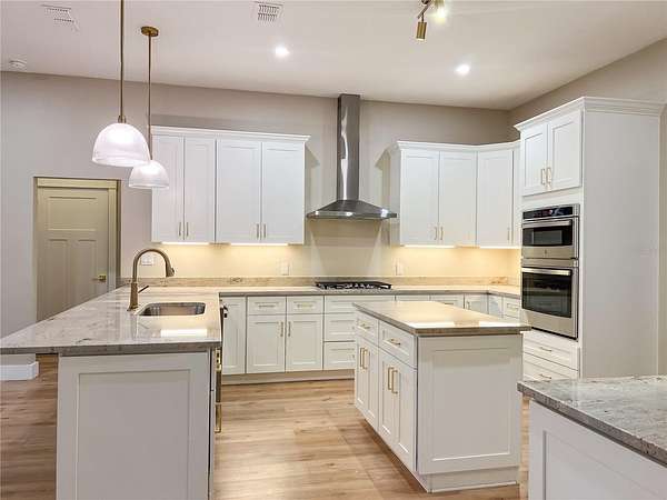 The home has been completely updated with new luxury vinyl plank throughout, fully renovated kitchen/bathrooms, plumbing fixtures, tankless hot water heater, paint, electrical fixtures, landscaping.....etc. The spacious kitchen showcases modern finishes, new stainless steel appliances, ample cabinetry, and plenty of counter space, flowing seamlessly into the main living area and positioned around the corner from the formal dining room.