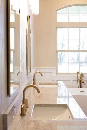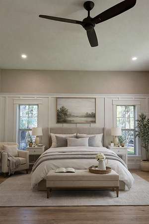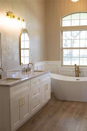- Ceiling Fans(s), Chair Rail, Dry Bar, Eat-In Kitchen, High Ceilings, Kitchen/Family Room Combo, Primary Bedroom Main Floor, Solid Wood Cabinets, Split Bedroom, Stone Counters, Thermostat, Walk-In Closet(s)
