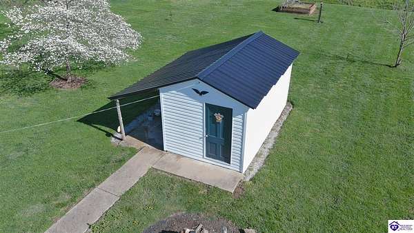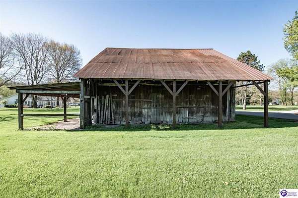 - Barn, Concrete Walks, Covered Front Porch, Landscaping, Mature Trees, Storage Building, Storage Shed, Trees