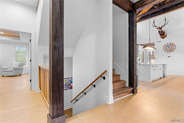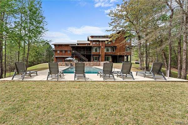 Set on 13 private acres, this exceptional estate offers luxury, privacy, and remarkable space with 6,508 heated and cooled square feet plus 5,223 square feet of unfinished space ideal for flex space or storage. The two-story home with a finished basement features a spacious living room with bamboo floors and a chef's kitchen complete with a large island, granite countertops, Wolf gas stove, soft-close cabinetry, walk-in pantry, and a separate ice maker. The primary suite offers vaulted ceilings and a spa-inspired bath with heated floors, quartz countertops, a garden tub, and a tiled shower. Enjoy outdoor living from the screened porch overlooking the in-ground pool. The basement includes a kitchenette, recreation room, safe room, and additional storage areas. Additional highlights include an elevator, 5 total garage bays, and a floored third-level attic, offering incredible storage and expansion potential.