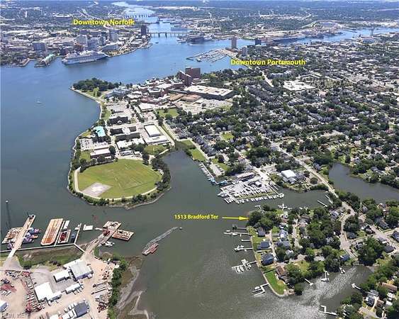 Est $1,424/moBuildable waterfront lot near mouth of Scotts Creek in downtown Portsmouth area. Views include Norfolk skyline and harbor, Hospital Point (US Naval Hospital), and overlooks marinas. Located second house from end of city maintained paved dead-end street. Plats provided show prior dwelling and preliminary proposed dwelling, there currently no buildings on the property.