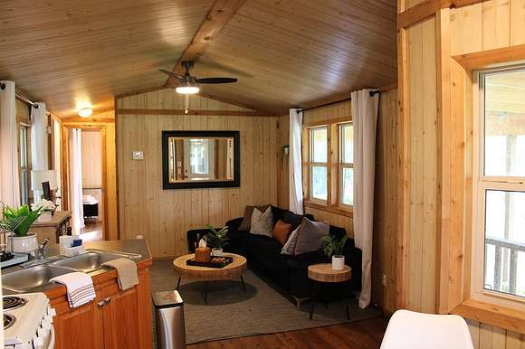 Private ranchette with endless options for uses with +/-25 acres of spactious landscape. The scenic and serene rolling terrain is highlighted with mature trees and a variety of wildlife. The main house has an open floor plan, high ceilings, kitchen with stainless appliances and a large primary bedroom and bath. Home has a second bedroom, 2.5 baths, third room/office and an attached covered porch looking out to the sandy beach pond. Guest cabin accomidations include one bedroom, 1 bath, kitchen, den, and covered porch. There is a custom 35x20 ft palapa bar overlooking the pond complete with a 12 ft. bar, mini fridge, hot/cold water and plenty of space for hosting large gatherings. The pond has a large sun deck. Additional features include 50x70 shop with large roll up doors and an a/c office, chicken coop, 50 amp and water for RV hookup, and a two stall outdoor restroom. With no restrictions and room to grow this property is made for everyday living and entertaining.
