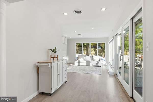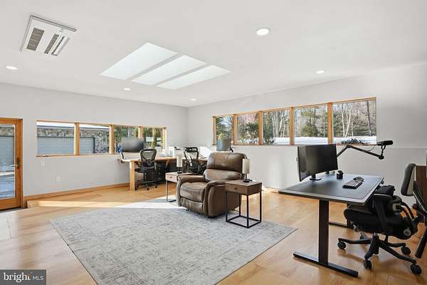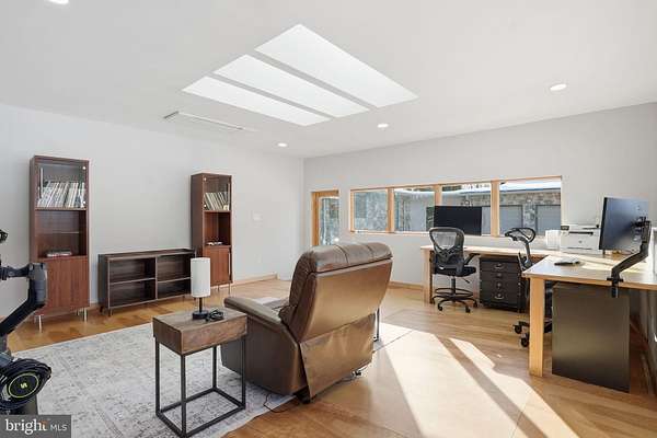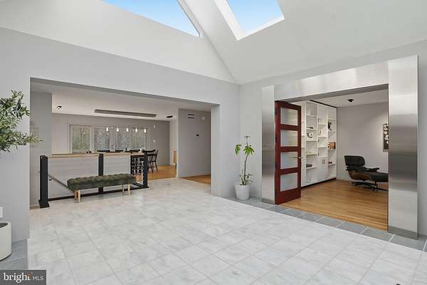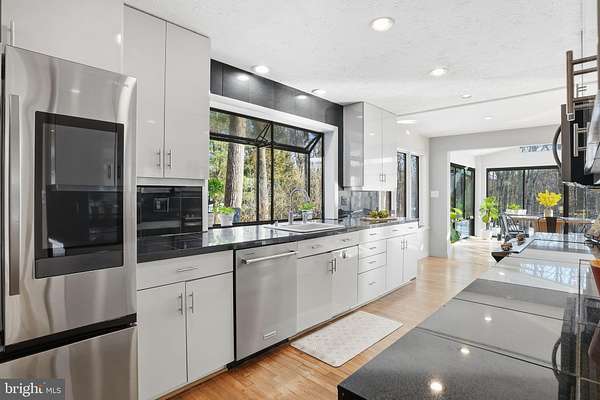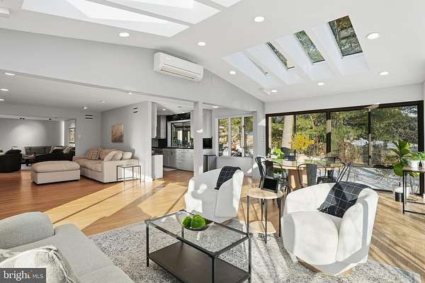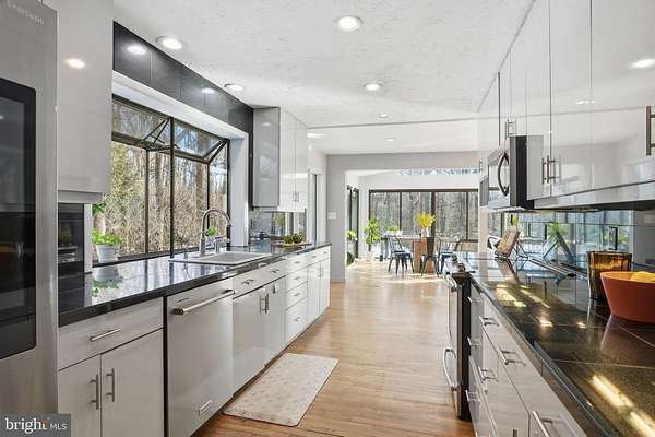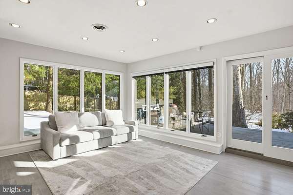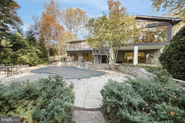 Set on 2 private acres at the end of a quiet no-thru street, this striking contemporary home offers nearly 7,000 square feet of light-filled living in the heart of Darnestown. The property feels like a retreat. Mature landscaping frames the long drive and brick paver courtyard, while expansive decks and patios step down to a sparkling in-ground pool surrounded by open lawn and wooded views. Even beyond the 6-foot deer fence, the land continues, giving the setting a rare sense of space and privacy. Whether hosting summer gatherings by the pool or enjoying crisp evenings around the fire pit, the outdoor spaces are as impressive as the home itself. Inside, a dramatic foyer with soaring ceilings, marble flooring, uplighting, and walls of windows and skylights sets the tone. Natural light pours in from every angle. To the right, a spacious office features built-in shelving, a desk, recessed lighting, and a full wall of windows overlooking the courtyard. To the left, a formal living room provides a refined space to gather, while the separate dining room offers ambient lighting, a gas fireplace, and expansive windows with double sliding doors that open directly to the outdoor oasis. The family room is warm and inviting, centered around a wood-burning fireplace with a marble surround and raised hearth. Nearby, the sunroom stuns with floor-to-ceiling windows and eight skylights that frame sweeping views of the backyard and pool. The kitchen blends style and function with stainless steel appliances, black granite counters, a large bay window over the sink, and a generous walk-in pantry. The main-level primary suite offers comfort and privacy, complete with a walk-in closet and a spacious bath featuring a large step-in shower with bench seating, dual shower heads, dual vanities, and a glass block window for soft natural light. A 2023 addition introduced a bright open sitting area wrapped in windows overlooking the backyard, along with built-in shelving and cabinetry. This wing also includes two large bedrooms and a full bath with dual vanities, a well-appointed laundry room and a half bath. The attached one-car garage is adjacent to a seperate space that has been fully finished and thoughtfully converted into a private office suite. With its own separate exterior entrance, this space is ideal for a home business, studio, or quiet workspace, while still maintaining convenient access to the main house. In addition, a detached three-car garage provides ample room for vehicles, storage, or hobbies. The expansive walk out lower level extends the living space with a large family room featuring another wood-burning fireplace, wet bar, and sliding glass doors that lead directly to the patio and pool deck. Two additional bedrooms also open to the pool area through sliding doors. A full bath, bonus room, a half bath and generous storage space complete this level, making it perfect for guests or multi-generational living. Modern comforts include remote-controlled window and skylight shades, energy-efficient insulation, a whole-house vacuum, and high-speed WiFi equipment. Major systems have been thoughtfully maintained, including a new roof installed in 2025, a new pool heater installed in 2025, Bryant dual-zone HVAC system installed in 2020 with heat pump and air cleaner, two 50-gallon water heaters, and a 400-amp electric panel. Enjoy easy access to nearby parkland and the C&O Canal locks, as well as convenient access to River Road for a direct route into Washington, DC or across to Virginia.