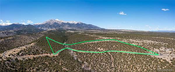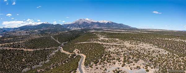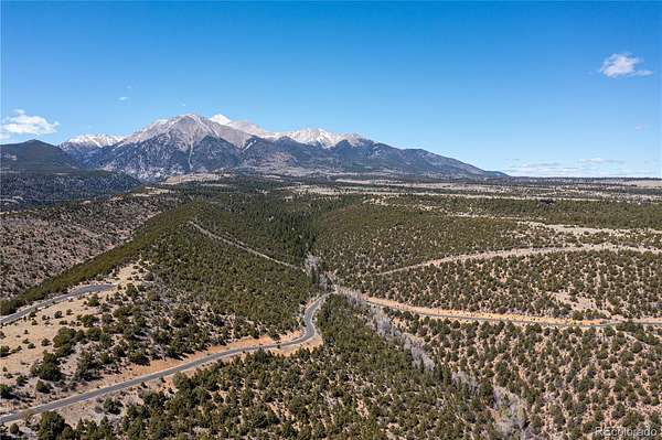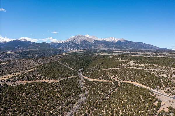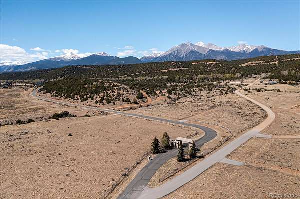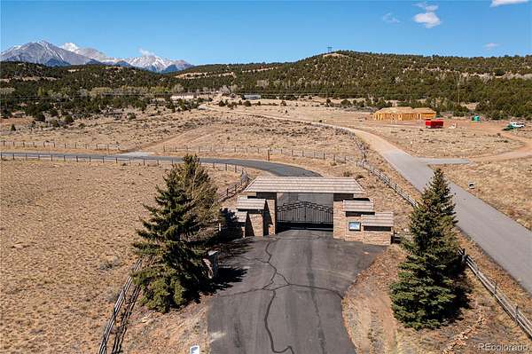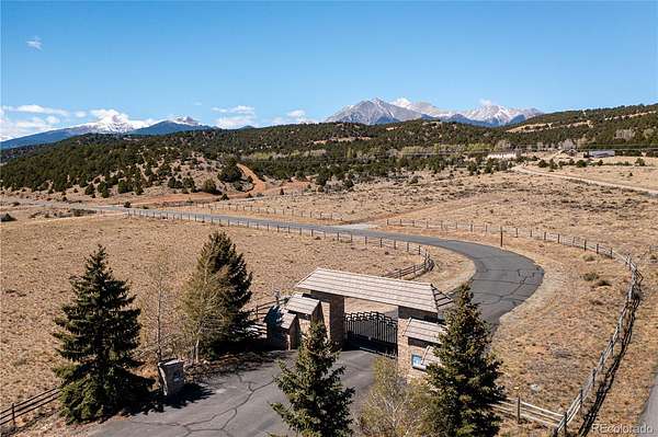 Just 10 minutes from town on paved roads, the property features a 7-acre building envelope, circular driveway, partial fencing, and a seasonal creek. Take in stunning views of the Continental Divide and Upper Arkansas River Valley.
