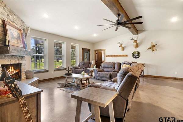 Set on 134 rolling acres in the Harmony ISD, this remarkable property offers elevated views and endless possibilities. At the center of it all sits a thoughtfully designed three-bedroom, two-bath barndominium--sturdy built with comfort in mind--offering generous outdoor living space perfect for relaxing or entertaining. Enjoy peaceful evenings in the hot tub while taking in the surrounding natural beauty. A charming cabin provides extra space for guests or a quiet retreat, and a large pond adds to the serene, picturesque setting. The land also features a spacious horse arena and well-maintained horse stables, ideal for equestrian enthusiasts. Whether you're seeking a working ranch, a weekend getaway, or a forever home, this unique property combines functionality with tranquility.