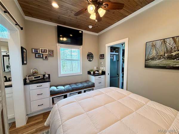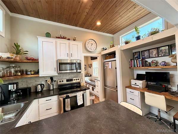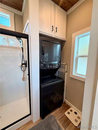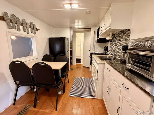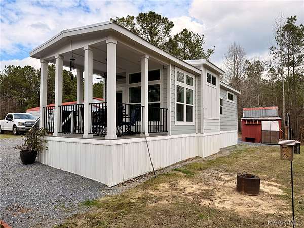 Escape to the peace and privacy of country living with this unique 6.8-acre property featuring two charming living spaces and plenty of room to spread out. Perfect as a weekend getaway, vacation property, or full-time residence, this rural retreat offers flexibility and character throughout. The adorable tiny home welcomes you with a covered front porch overlooking the beautiful property-an ideal spot for morning coffee or unwinding at the end of the day. Inside, you'll find a cozy living room with an electric fireplace, a well-equipped kitchen featuring stainless steel appliances, a breakfast bar, abundant cabinet and counter space, and a convenient built-in desk area. The bedroom includes built-ins for smart storage, while the bathroom offers double vanities, a walk-in shower, and a stackable washer and dryer. The property also includes a camper with an added-on living room, creating a comfortable second living space complete with a kitchen, bathroom, and bedroom-perfect for guests, extended family, or rental potential. Outside, you'll find multiple functional outbuildings including a storage building, a double metal carport, and an additional outbuilding that houses another washer and dryer along with a mop sink-providing extra convenience and workspace. With 6.8 acres of rural land, there's plenty of room to roam, relax, and enjoy the quiet surroundings. Whether you're looking for a peaceful retreat or a place to call home, this property offers a rare combination of charm, versatility, and country living.