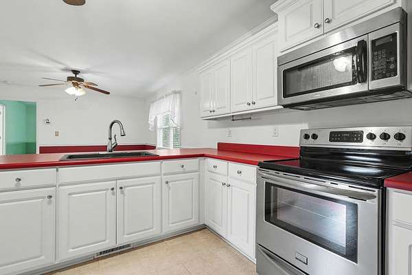 - Attic Stairs-Disappearing, Cable Available, Ceiling Fan, Ceilings-Blown, Ceilings-Cathedral/Raised, Ceilings-Smooth, Countertops-Laminate, Open Floor Plan, Second Living Quarters, Smoke Detector, Walk in Closet, Window TRMNTS-Some Remain