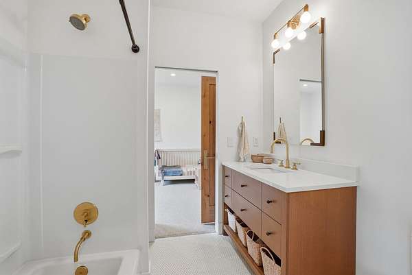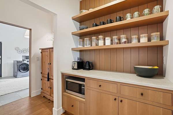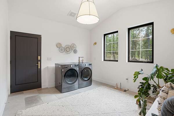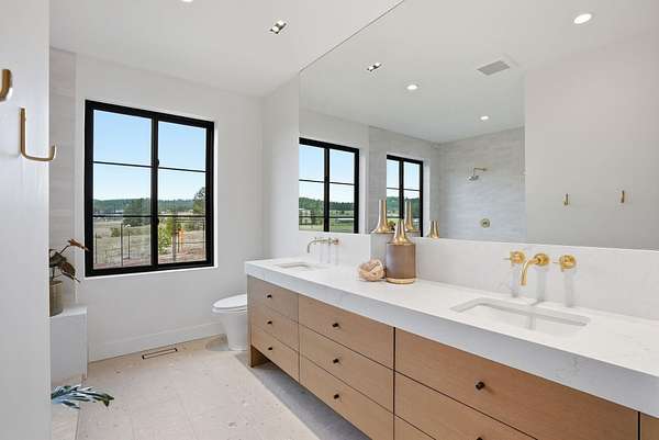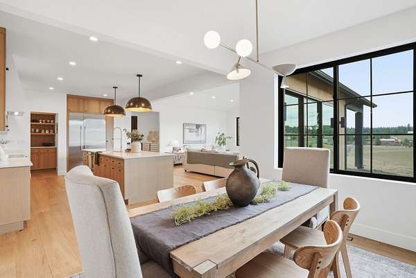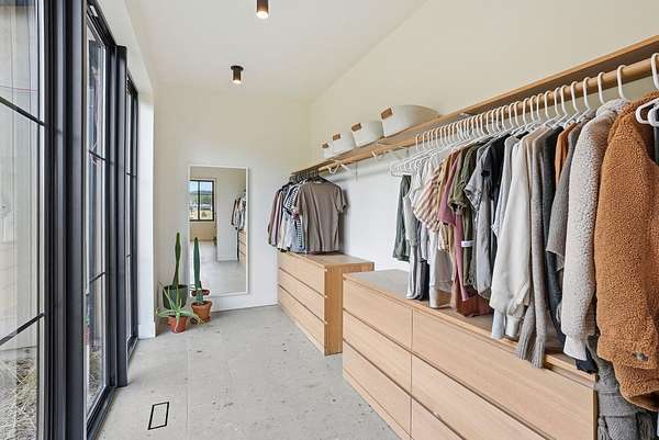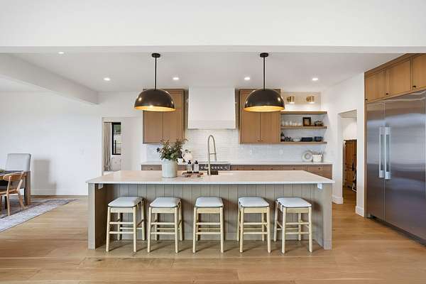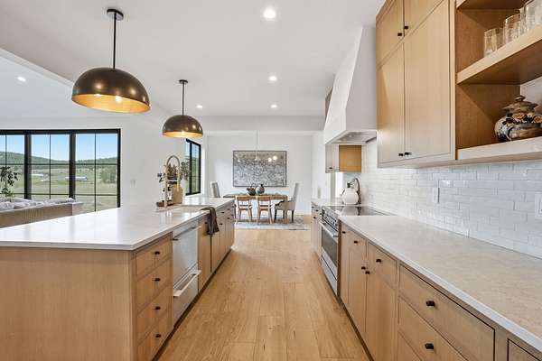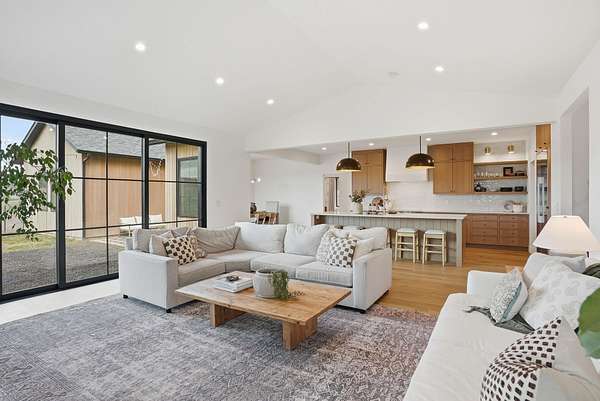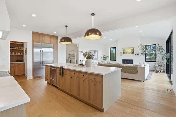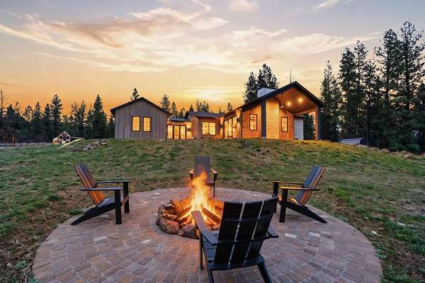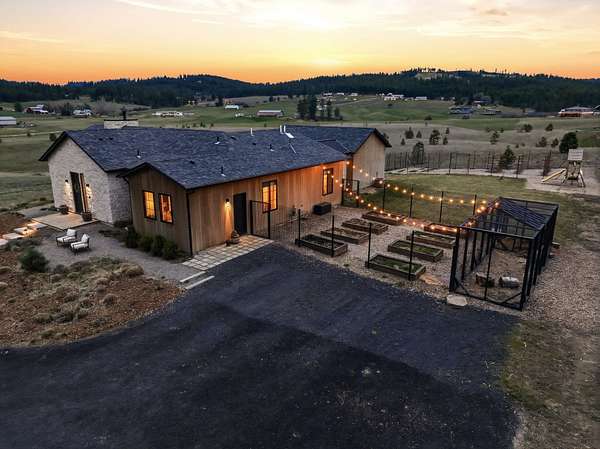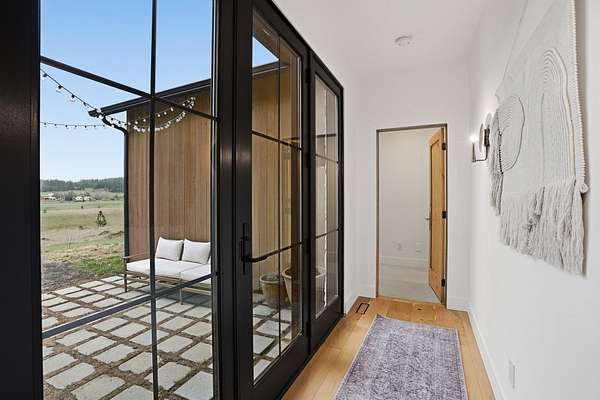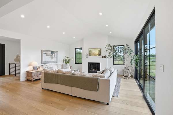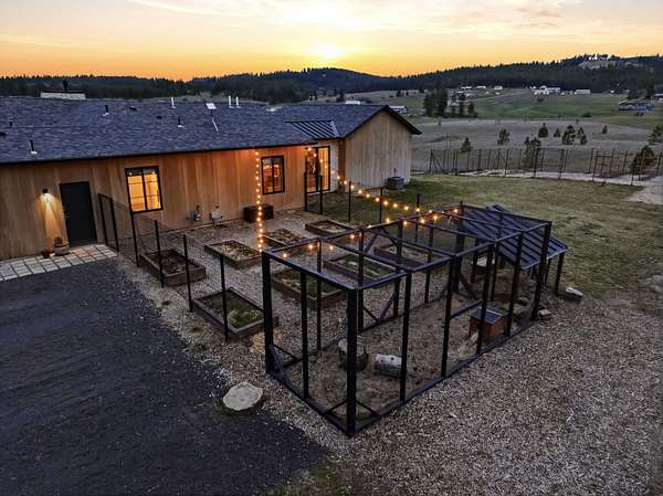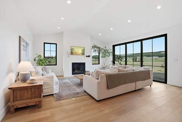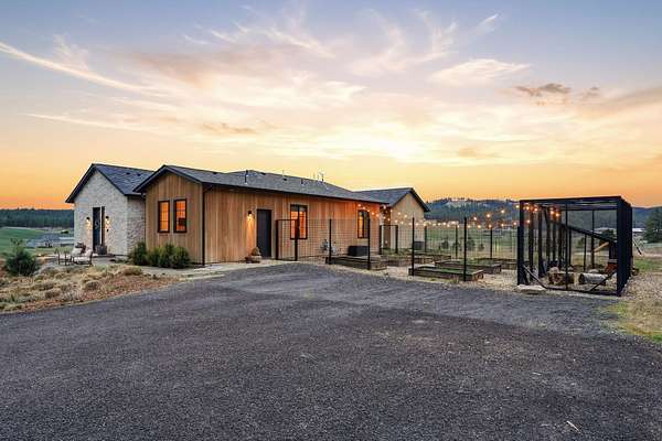 Designed by Pacific Design Co., this modern homestead, sits on 11 acres of rolling hills with unobstructed views. Cedar and stone architecture blends seamlessly with the natural environment. Every space is purposeful- warm, refined materials and custom white oak millwork create a calm, connected home built for indoor/outdoor living. Enter a sun-filled great room with Du Chateau wide-plank floors and a 12' slider that opens to thoughtful entertainment spaces. The chef's kitchen features Fisher & Paykel appliances, honed Pental quartz counters, zellige tile backsplash, cast-iron sink, and custom cabinetry. The primary suite is a private spa retreat with heated tile floors and a 66" solid-surface freestanding tub. High-end touches include Emtek hardware, Anderson windows, and integrated security and smart-home wiring. A true homestead; two fenced gardens, raised cedar beds, berry patch, attached coop/run and seasonal creek access. A home built different and designed to live.