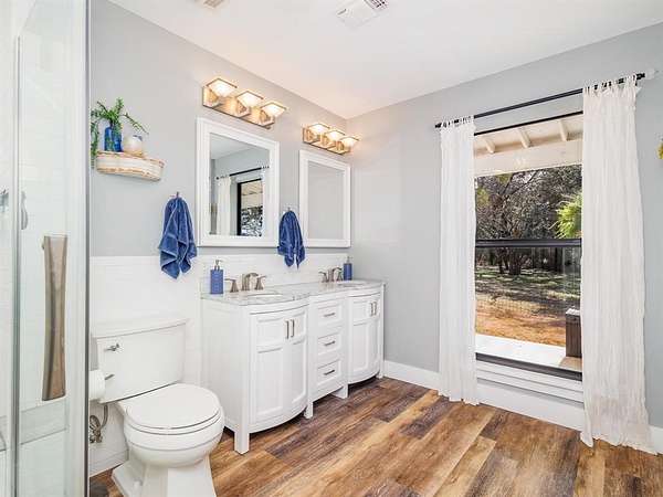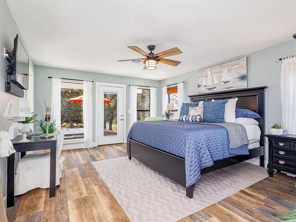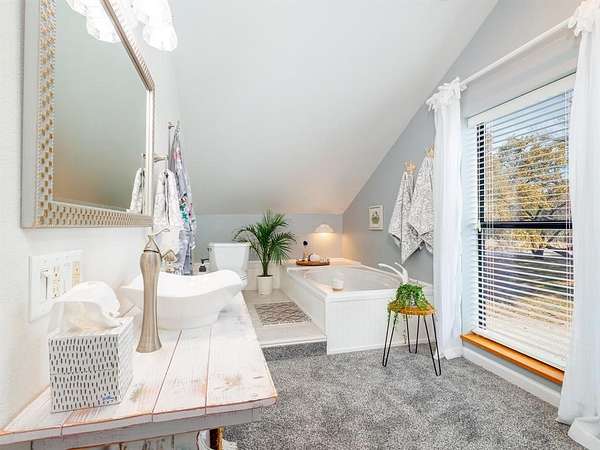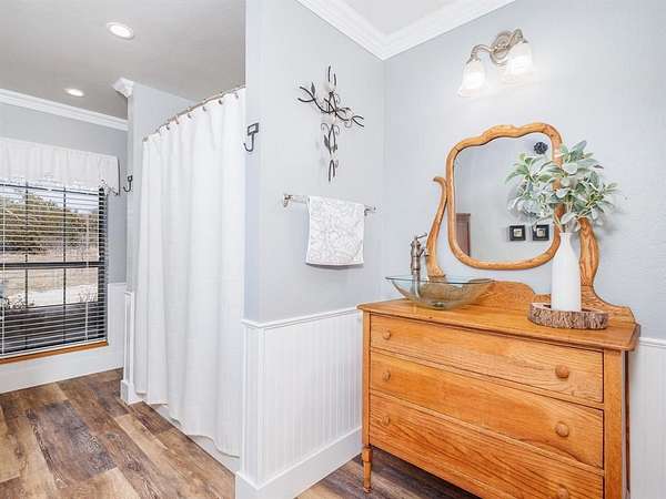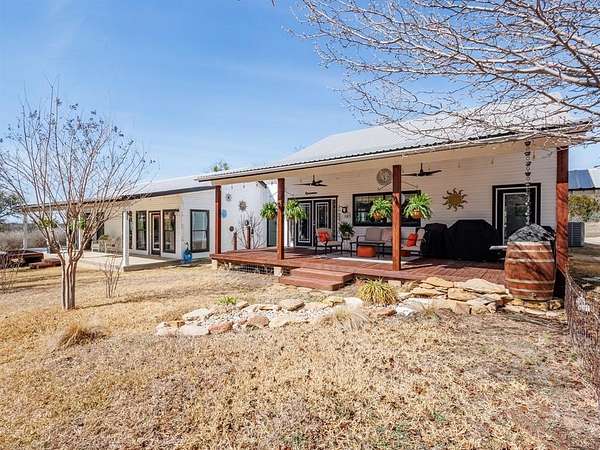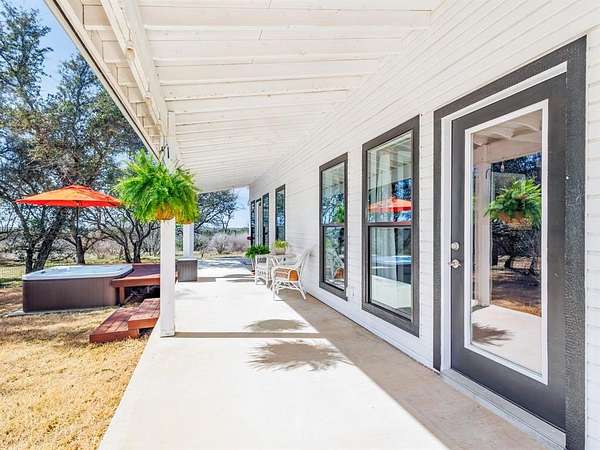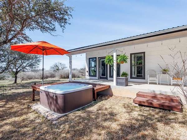 Welcome Home! Privately tucked away on 5.74acres, this stunning custom built home offers a one-of-a-kind retreat that delivers space, privacy and thoughtful design. Featuring 3 spacious bdrms and 4 full baths, each has its own private bathroom and generous walk-in closet, creating comfort for family and guests alike. The inviting front porch welcomes you home, while the expansive back porch is designed for entertaining under the Texas skies. Just off the primary suite, unwind in your private hot tub, the ultimate end of the day escape. Upstairs, a versatile oversized bdrm with beautiful slipper tub offers endless possibilities, a secondary primary suite, luxurious spa retreat, guest haven, children’s playroom, office or personal gym. Whether you’re hosting gatherings, enjoying quiet mornings on the porch, or simply taking in the beauty, this property offers the lifestyle so many dream of – and so few find. A rare opportunity to own a private Texas sanctuary with room to breathe.