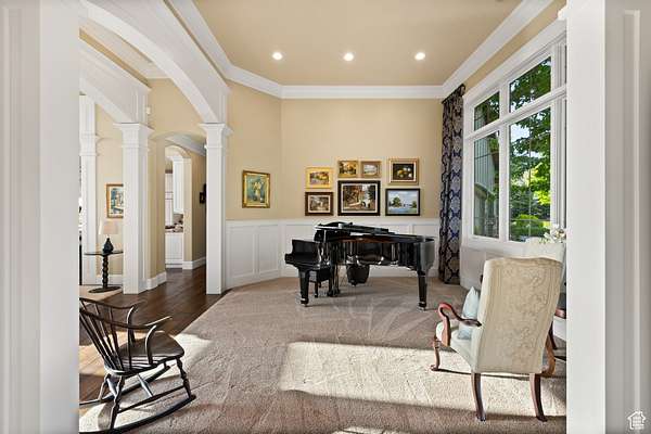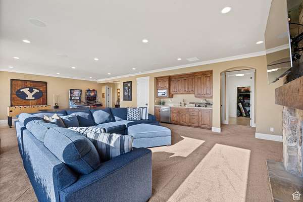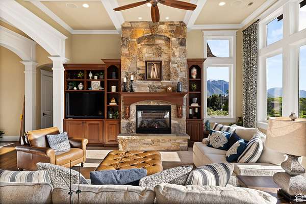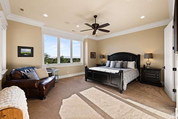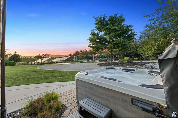 Experience unparalleled luxury in this stunning custom rambler set on 2 acres with sweeping views of Utah Lake, Maple Mountain, and Mt. Nebo. This 6,000+ sq ft masterpiece offers true single-level living with a main-floor primary suite, private office, spacious great room, and zero-step entry for full ADA accessibility. Enjoy soaring 1013' ceilings, walls of windows, and a full Control4 smart home system. The gourmet kitchen is a chef's dream, featuring a 60" Wolf range, Sub-Zero refrigerator, hidden pantry, oversized slab island, and beautifully crafted custom cabinetry. The walkout basement is perfect for entertaining with a large rec room, fireplace, surround sound, and a private guest suite. Additional highlights include a finished 3-car garage plus shop with hanging slab, 42 solar panels, whole-house audio, security, and water filtration systems. Step outside to your own resort-style retreat complete with a pickleball/basketball court, in-ground trampoline, hot tub, and mature trees. Includes animal and water shares (6.4 acres). The property also offers potential to subdivide. With far too many upgrades to list, this home is truly a must-see.