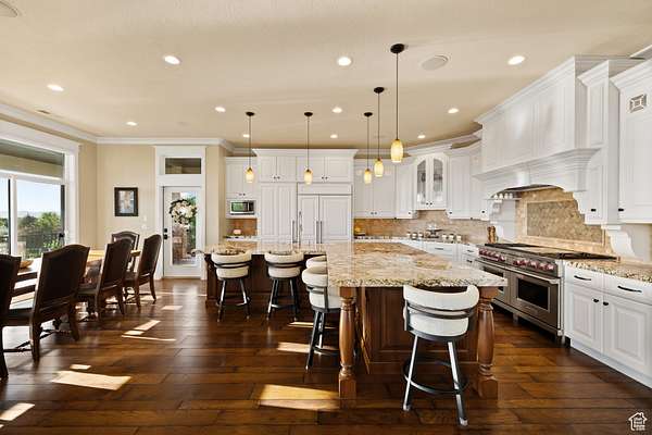 - Built-In Range/Oven, Den/Office, Disposal, Double Oven, Fire Alarm, Floor Drains, Gas Log, Gas Range, Granite Countertops, Great Room, Instantaneous Hot Water, Primary Bath, Second Kitchen, Security Alarm, Sep. Tub/Shower Bath, Theater Room, Vaulted Ceilings, Walk-In Closet, Wet Bar