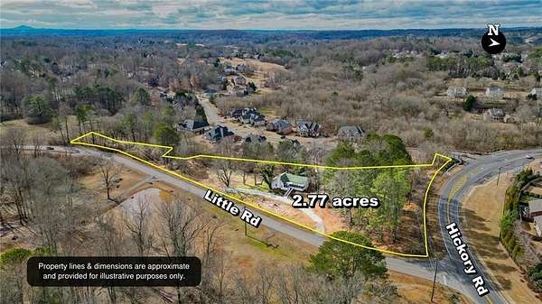 Est $3,133/moTake a look at this 2.77 acres located at the corner of Hickory Road and Little Road. This corner acreage offers 425 feet of frontage on Hickory Rd and 786 feet on Little Road. The value is in the land and its best use would be commercial and is currently zoned Agriculture. This busy corner lot is located within a 1/2 mile of Sequoyah High school and only 1.5 miles to Kroger on Hickory Flat Hwy. Property is being sold as is and has a tenant in place. The tenant will receive a 6 month notice to leave current rent is $2200 per month. Tenant occupied do not disturb, appointment only.