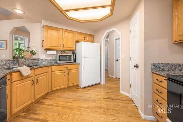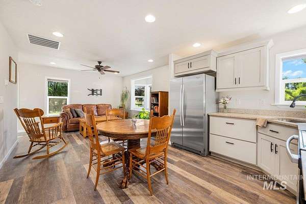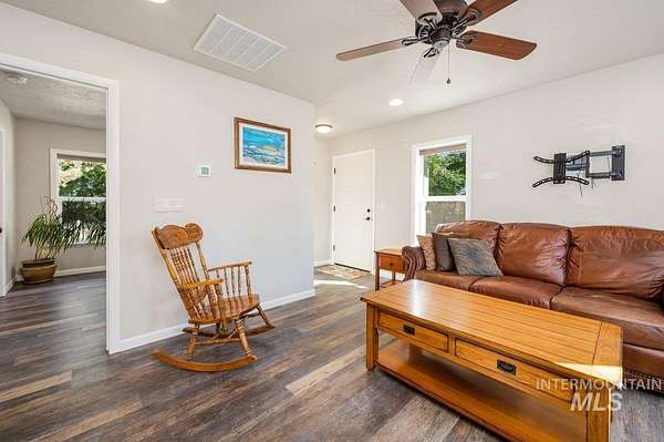 Multi-generational living opportunity with 2 homes on 2.5 acres! Welcome to true country living while close enough to shopping, restaurants & freeway access. This beautiful private oasis with a tree-lined drive sits 1/8 mile back from road. Amidst the many, many trees you'll find two single-level homes, both light & bright on this spectacular property. Only one owner ever! First (original) custom-built home is 1460 sqft with open concept kitchen/dining/living rooms, granite countertops, hardwood floorss (with glitza finish), carpeting, vaulted ceilings, wood-burning fireplace, 3 beds, 2 baths, 3-car garage, HVAC 2022, water heater 2021, septic 2023. Second home is 6 years old, 660 sqft, 1 bed, 1 bath, living area, full kitchen, granite countertops, LVP floors, and laundry. Entire property boasts security system, artesian well (2 new pumps), mature landscaping. Large pasture w/corral fencing. Picnic area w/fire pit under canopy of trees. Plenty of room to expand for barn, shop, additional RV parking. Spectacular sunrise with view of Bogus Basin & short walk to Boise River fishing. Nature is abundant with quail, turkey & deer. 12x16 Premier Barn Tuff Shed (w/loft, stairs and electrical!) and John Deere lawn tractor included. The possibilities are endless!