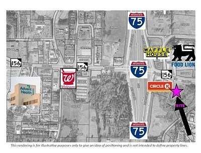 POTENTIAL COMMERCIAL TRACT JUST OFF I-75 AT EXIT 315. This parcel is located on Red Bud Road, just off of the I-75 ramp, adjacent to Circle K, and across the street from the Food Lion shopping center. Public water and sewer are available. 2.2 +/- acres and approximately 249 +/- feet of frontage on Red Bud Road (GA-156), per plat on file. Recorded, non-exclusive easement allowing for combined water retention and parking on adjacent property. Current zoning is R-1, per county records. Old homesite on the property in need of demolition, and priced accordingly. About the area - Calhoun is the county seat of Gordon County, Georgia, which is located just off of I-75, the main north/south artery, with six entrance-exit ramps. As of the 2020 census, the city had a population of 16,949 (up from 15,650 in 2010) and the county had a population of 57,544 (up from 55,186 in 2010). Calhoun/Gordon County is strategically located just off I-75 in Northwest Georgia, with 45-60 minute access to both Chattanooga and Atlanta. Do not miss this lucrative investment to add to your portfolio!