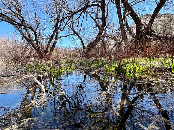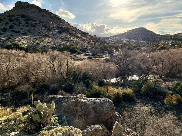 The Pitchfork Ranch transports you to a simpler time, where solitude and unspoiled beauty define the landscape. Located 30+- miles south of Silver City, New Mexico, rugged mountains give way to the dramatic Chihuahuan Desert, and nine miles of the Burro Cienaga flow through the heart of the ranch, providing a rare and critical water source. Elevations range from 5,150' to 5,650'. Spanning 11,393+- acres, including 5,160+- deeded acres, 3,597+- Bureau of Land Management (BLM) lease acres, and 2,626+- New Mexico State lease acres, the ranch is a hub for wildlife and habitat conservation and is protected by a Conservation Easement.