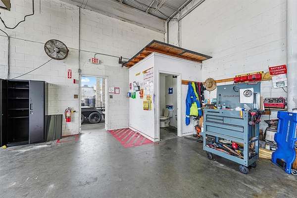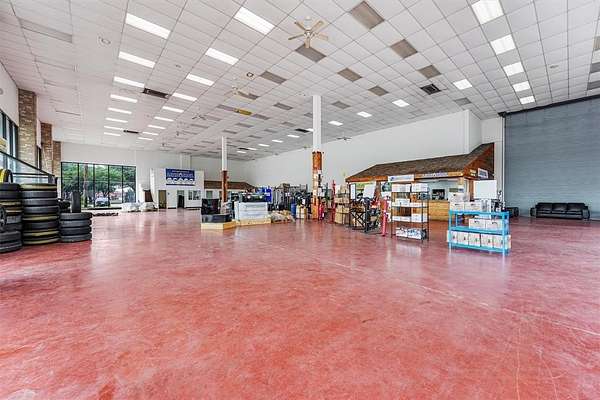 The improvements on the site are designed to harmonize with the surrounding area through an appealing architectural style. Spanning over 13,500 square feet of gross building area, the facility accommodates a diverse range of uses. The showroom itself encompasses more than 9,335 square feet and is characterized by predominantly glass walls, brick columns, and 22-foot ceilings, making it ideal for showcasing a wide variety of merchandise. A 22-foot door facilitates the efficient movement of inventory in and out of the space, while the building also includes 10 sales offices and a dedicated service center area. Additionally, the property features two mezzanines totaling 1,021 square feet and two public restrooms. At the rear of the building, there is a fully operational shop comprising a 2,226-square-foot heated area, equipped with four bay doors, a restroom, air lines, and ample lighting. The exterior boasts 869 square feet of covered high bay space, complete with a 5-ton overhead crane, as well as 1,328 square feet of low bay space and a 1,767-square-foot canopy along the side of the building, totaling 3,964 square feet of covered areas. The canopy can be easily enclosed should additional building space be required. The entire 2.64 acres is paved with concrete parking, accommodating a variety of vehicles, including cars, boats, trailers, and inventory. The size, layout, and enhancements of this property provide exceptional versatility, allowing for numerous potential uses.