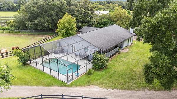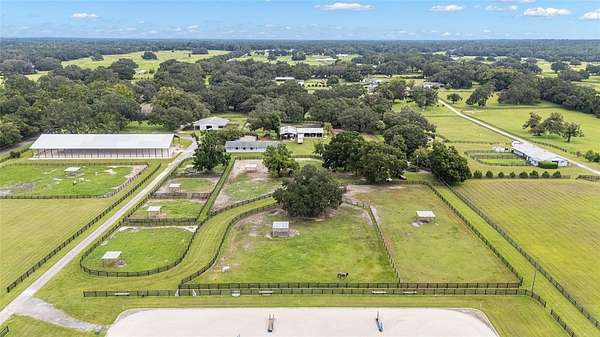 Working Horse Farm! An exceptional opportunity to own a fully functioning horse farm / training facility in a perfect location in NW Marion County, 20 minutes to the World Equestrian Center, 7 minutes to HITS, 10 minutes to Barnstaple & Sweet Dixie! This premier equestrian property features Two residences, Main pool home, 3-3 and Guest cottage 3-2, as well as Two well-equipped Center aisle Barns, Barn 2 is equipped with run-outs. All this offering flexibility for owners, trainers, staff, or income-producing potential. This is a well-maintained farm and does consist of two parcels being sold together. You will notice the rolling acreage, mature trees, along with paddocks and pastures that provide both beauty and usability, with thoughtfully designed and professional-grade equestrian facilities. The farm is equipped with a covered arena with mirrors, an outdoor Wordley Martin arena (250x150), and a cross-country schooling field including water complex, ditch and banks, making it an eventer's dream yet suitable for multiple disciplines as well. Whether preparing for competition or daily schooling, the layout supports an active and efficient horse operation. Designed for serious equestrians, this working farm combines location, infrastructure, and versatility. With proximity to world-class events, shows, and amenities, it is ideal for trainers, competitors, or investors seeking a turnkey equestrian property in a highly desirable area. Extra features such as Garage with studio apartment, 3 bay workshop, covered trailer parking, shavings storage, round pen, 4 RV hook ups, 2 commercial Speed Queen barn washing machines, and too many more to list! Schedule your tour today!