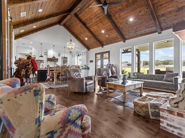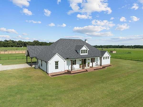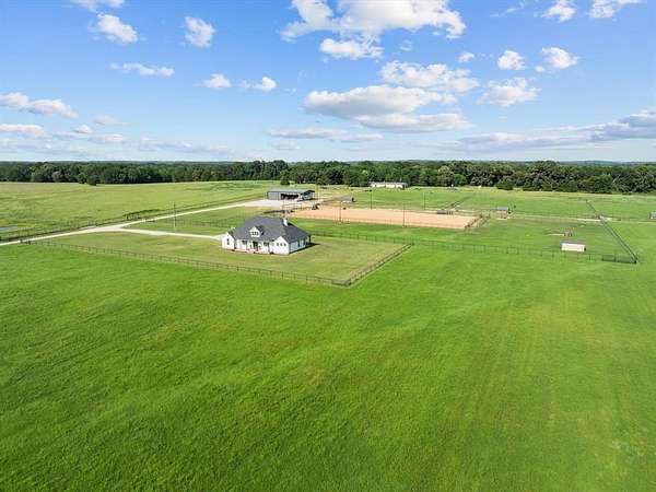 Experience upscale country living on 35+ acres in the scenic countryside of Lindale, Texas. Property features a beautifully maintained 3-bedroom, 3 -bathroom home offering the perfect blend of country living and modern comfort. Open concept living and dining areas with plenty of natural light, amazing kitchen with ample storage and modern appliances, a designated office or additional bedroom, and extra-large utility room with sink. Comfortable and inviting layout, perfect for both everyday living and entertaining. Designed with both relaxation and functionality in mind, the property features a wealth of amenities ideal for horse lovers. The pipe and stay tight wire arena was thoughtfully thought out, measuring 150' x 300' with a Preifert Roping Chute and a pen for calves. The barn has 4 - 12x60 runs with a center cut gate to make 8 -12x30 runs, a 12x30 storage, feed and hay room, as well as a 50 amp RV plug for trailer parking, and ample space for equipment, vehicles, or additional storage. There is a 22 acres coastal field and 4 - 2 acre turnouts each with a loafing shed! Gated entry with house located at the back of the property for privacy and room to expand! Come take a look at this immaculate property today!