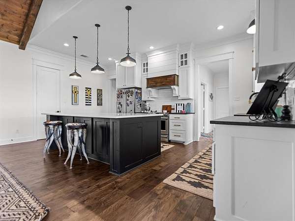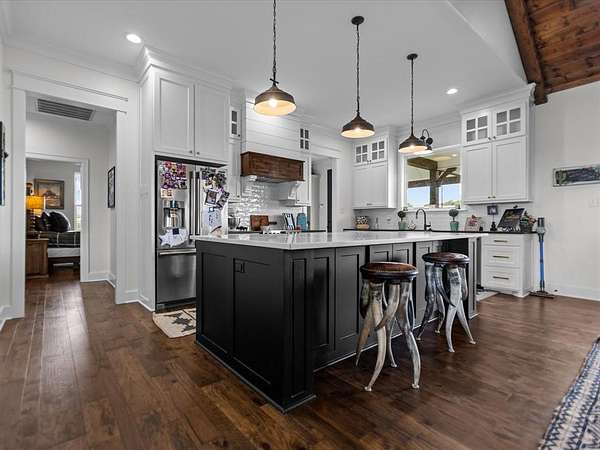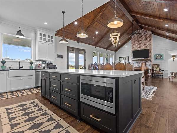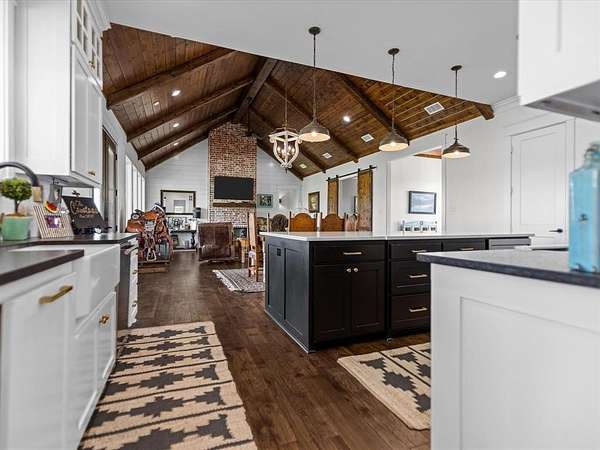 - Decorative Lighting, Kitchen Island, Open Floorplan, Vaulted Ceiling(s)
