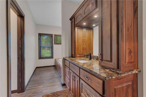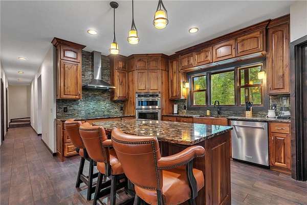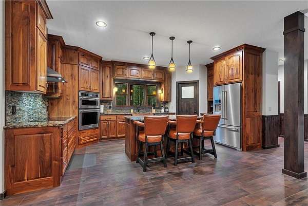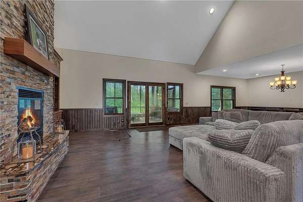 Discover this captivating 4-bedroom, 3.5-bathroom executive home, perfectly nestled on a secluded, beautifully landscaped lot filled with vibrant flowers and lush greenery. This turn-key property comes furnished, making it move-in ready with comfort and style. Step inside to find a stunning floor-to-ceiling fireplace, a chef's kitchen complete with double ovens, rich walnut cabinets offering abundant storage, granite countertops, a spacious walk-in pantry, and stainless steel appliances. The luxurious primary suite features custom built-ins and French doors leading to a spa-like en-suite with double vanities, two walk-in closets, a jacuzzi tub, and a walk-in tiled shower. A large entryway from the garage provides practical built-in storage and a dedicated laundry room for added ease. Upstairs, enjoy a versatile loft space overlooking the main living area, a large family room, an additional bedroom with generous storage, and a full bathroom. For those who love to unwind outdoors, the three-season porch with stamped concrete is the perfect retreat to enjoy peaceful evenings surrounded by nature. With space, privacy, and thoughtful design throughout, this exceptional home is a rare find.