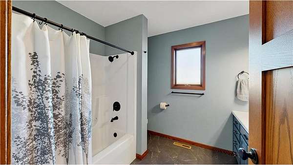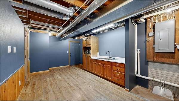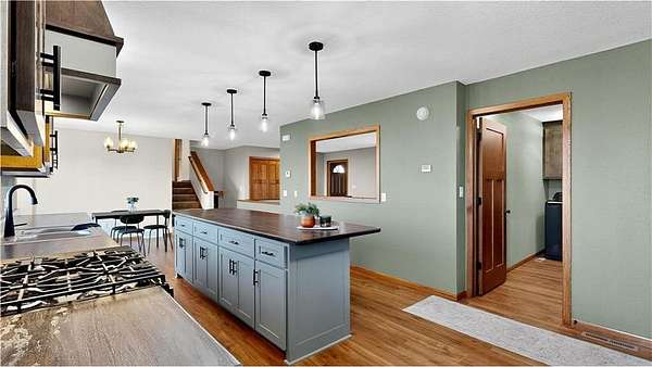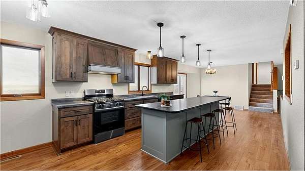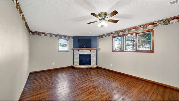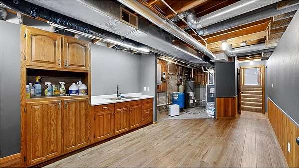 The home has been opened up to create a bright, functional layout, anchored by a fully remodeled kitchen with custom cabinetry, updated appliances, and seamless flow into the main living and dining areas. The sunken living room adds character, while the finished lower level provides additional living space, a fireplace, and a large bonus room ideal for a second living area, office, or hobby space.