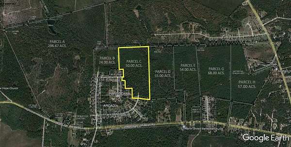 This tract has a tremendous amount of potential as either a development tract or as a beautiful residential parcel with some extra elbow room. The road frontage comes directly to the property from Arcadia Subdivision allowing the investment minded the potential to pursue a potential full scale development behind Arcadia with access to county water. There are two county maintained roads that dead end into the property, allowing for multiple entrances. It could also be used for a single residence for someone who needs the additional space. The tract is wooded throughout with moderate to mature pine and hardwood timber, making for some truly exceptional areas to enjoy the beauty and nature of the area. There are some gorgeous hardwoods straddling the interior road system which allow for ample access to the entirety of the tract. A unique opportunity in a very desirable area for a savvy investor or rural land enthusiast.