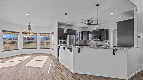 ONE OF NONE! A Truly One-of-a-Kind Property! This is not just a home; it's a unicorn - rare and extraordinary! Nestled on 17 stunning, fully fenced acres, this property is a dream come true for those seeking space, beauty, and functionality. From the moment you arrive, you'll be captivated by the meticulously landscaped grounds, the open fields that produce hay, and the thoughtfully designed outbuildings. With a three-car garage and a picturesque patio area, you'll fall in love before even stepping inside. As you step through the front door, you'll be greeted by a warm and inviting layout that combines style and practicality. The main floor boasts a versatile office/dining room perfect for work or hosting family dinners. An open-concept kitchen and living area, ideal for entertaining or quiet nights in. A spacious master suite featuring a walk-in closet and a luxurious 5-piece bathroom for your private retreat. An additional main-floor bedroom accompanied by a full bathroom, offering convenience for guests or family. Head upstairs, where you'll find two more generously sized bedrooms. A bonus room, perfect for crafts, hobbies, or a play area - your imagination is the limit! This property's outdoor living space is nothing short of spectacular. You'll enjoy wide open spaces to relax, entertain, and take in the breathtaking views. Room for animals, hobbies, and outdoor recreation. Beautifully designed areas for gardening, gatherings, or just soaking up the serenity of your surroundings. With its unbeatable combination of privacy, charm, and practicality, this home is a rare gem that offers something for everyone. Whether you dream of a peaceful retreat, a working property, or a place to host family and friends, this property checks every box. Don't miss your chance to own this extraordinary slice of paradise. Contact the listing agent today to schedule your private showing!