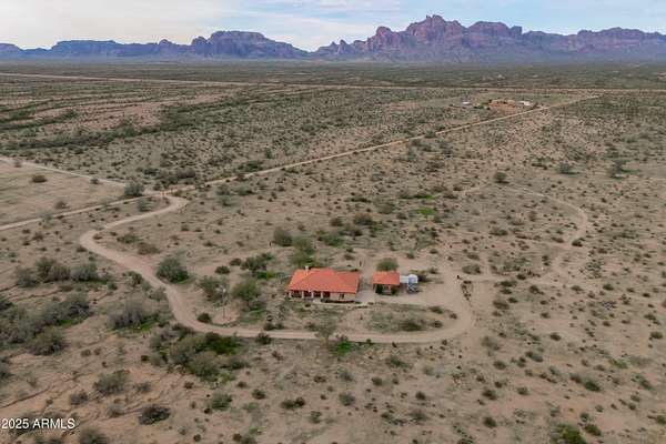 Spectacular 40-acre ranch offering privacy, breathtaking mountain views, and true Arizona living! This stunning 4-bedroom, 3-bath, 2,336 sq ft home features a formal dining room, a cozy fireplace, and an additional flex space perfect for an office or sitting room. Expansive windows frame the incredible Tonopah scenery, with saguaros as your only neighbors. Beautiful flooring flows throughout the home, complemented by abundant storage, real wood cabinetry with pull-outs, a charming office nook, and built-in Craftsman-style bookshelves surrounding the living room TV area. Enjoy covered patios on both the front and back of the home, a large 2-car garage, and a massive detached workshop that can also serve as additional garage space. Ideal for horses, hiking, and wide-open living!
