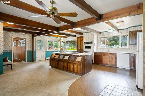 One of a kind horse property! Riding arena, nearly 3200sf barn with concrete floors, 4 stalls, pasture, a nearly 4000sf SHOP, Mt. Hood views and SO much more! As you enter through the private gate, you will see a large paved circular driveway that leads to the home, detached 2 car garage & shop! Enjoy the beautiful Mt Hood views out the back windows or while relaxing on the huge back patio! This home has so much potential! Three large bedrooms, built-in features, cedar lined closets, vintage bathrooms & stained glass touches. The bonus family room is a great space for game night, movie watching or just utilizing the fun bar top! Enjoy the city/rodeo fireworks displays right from the front yard! Hard to describe in words ALL this property has to offer, so come experience it for yourself, fall in love & make it yours! Be sure to say hello to Pete the Peacock!
