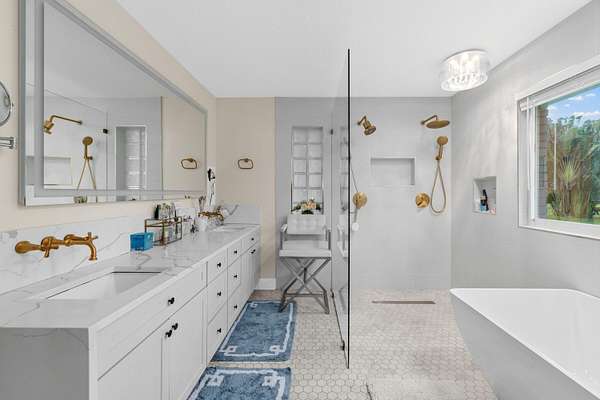 - Bar, Built-In Features, Closet Cabinetry, Custom Mirrors, High Ceilings, Kitchen Island, Roman Tub, Vaulted Ceiling(s), Walk-In Closet(s)