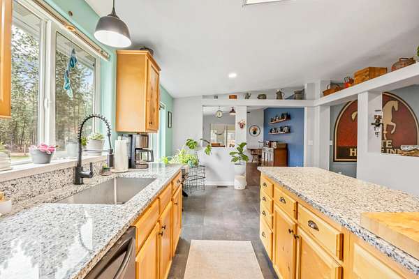 One-level home on 9.95 acres in the desirable Ponderosa Pines. This beautifully updated property features granite countertops, updated appliances including a propane cooktop, and new flooring throughout. The spacious primary suite offers a stunning, fully updated bathroom designed for comfort and style. A functional laundry room includes a convenient half bath. Outside, the property is set up for both lifestyle and utility with a greenhouse, established garden area, woodshed, and a large 1,920 sq ft shop equipped with 220 electrical service--perfect for projects, storage, or hobbies. The backyard includes a sprinkler system to keep the landscape maintained with ease. A rare opportunity to enjoy updated living with acreage, privacy, and versatile outbuildings in a peaceful setting.