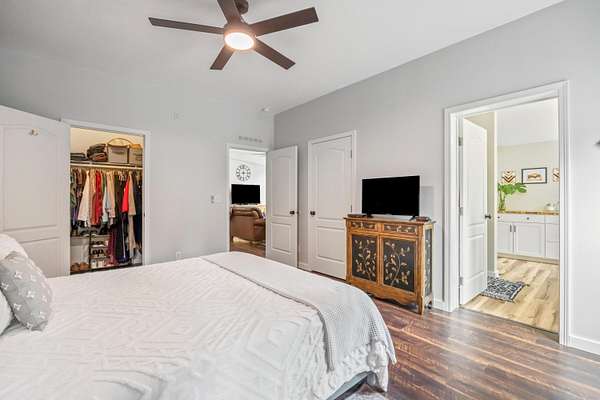 - Ceiling Fan(s), Granite Counters, Kitchen Island, Shower/Tub Combo, Walk-In Closet(s)