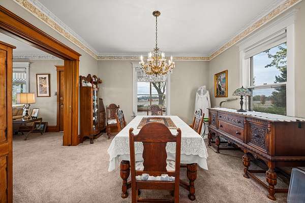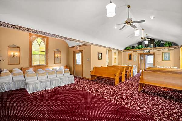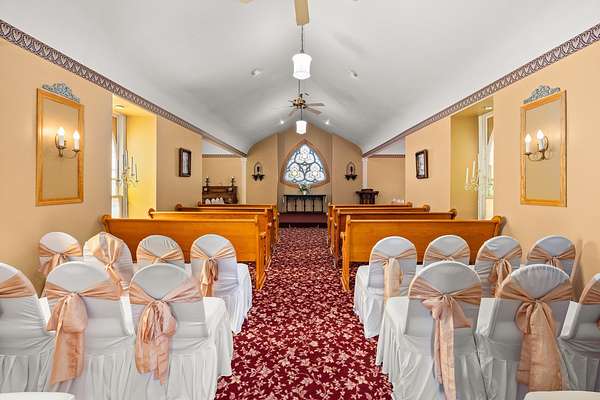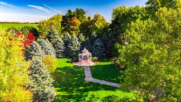 ENDLESS POSSIBILITIES AWAIT! ...A RARE OPPORTUNITY TO LIVE, WORK, AND DREAM ALL IN ONE PLACE! This is the perfect opportunity for the visionary buyer or entrepreneur ready to continue a long-time, turn-key business and/or bring an exciting new vision to life. Set on approximately 7 acres of breathtaking grounds, this property is a rare combination of beauty, versatility, and potential. From the moment you arrive, you'll be captivated by the manicured landscaping, gazebos, pergola, brick paver walkways, patios, and wildflower prairie that create a setting of timeless charm and natural elegance. Whether you're imagining weddings, events, retreats, or a boutique bed-and-breakfast, the possibilities here are truly endless. The banquet hall offers a covered entrance, bar, dance floor, stage, accessible restrooms, catering prep and serving rooms, laundry, and ample storage - everything you need to host unforgettable gatherings. A two-story barn offers even more potential, whether for creative repurposing or abundant storage. The property also features a picturesque chapel that seats up to 100 guests, a cottage with restrooms, a sound shed, lighted paved parking, and a 2.5-car garage. At the heart of it all is a stunning 3,200+ square foot residence that perfectly complements the grounds. This 4-bedroom, 4.5-bath home spans three stories of rich woodwork, beautiful windows, doors, and custom details. Inside, you'll find a formal living and separate dining room, a kitchen with island and walk-in pantry, a second eating/gathering area, a sunken family room with vaulted ceiling and gas fireplace, an office, and abundant storage throughout. Step onto the screened-in front porch with your favorite beverage and book to take in the sweeping countryside views that make this property so special or relax on the back deck to enjoy all this property has to offer! Meticulously maintained and filled with warmth and history, this property invites you to dream big - a bed and breakfast, an event venue, or your own private haven. LET YOUR IMAGINATION TAKE ROOT HERE, WHERE OPPORTUNITY, BEAUTY, AND POTENTIAL COME TOGETHER IN ONE TRULY EXTRAORDINARY SETTING!