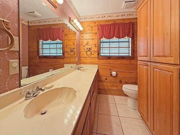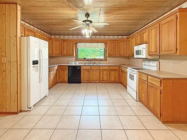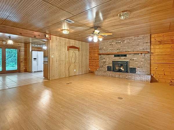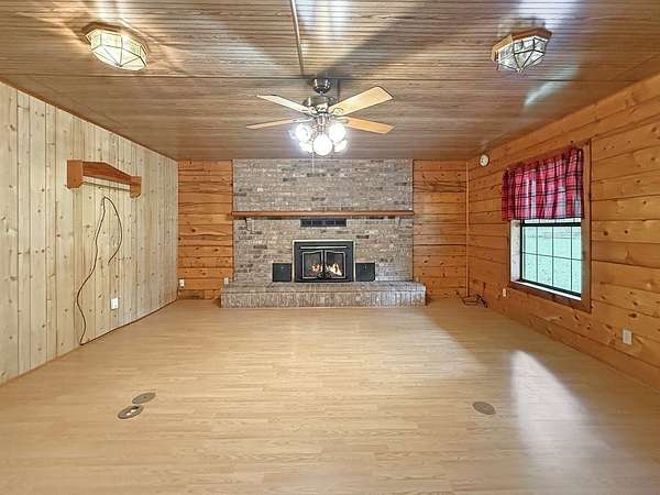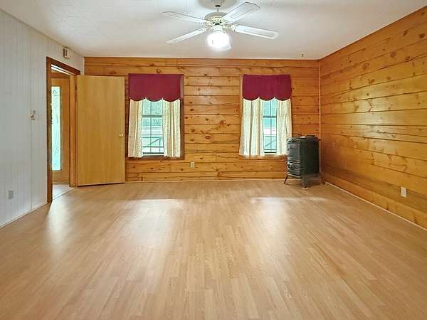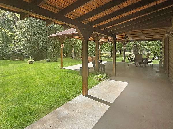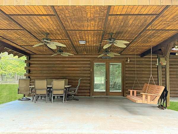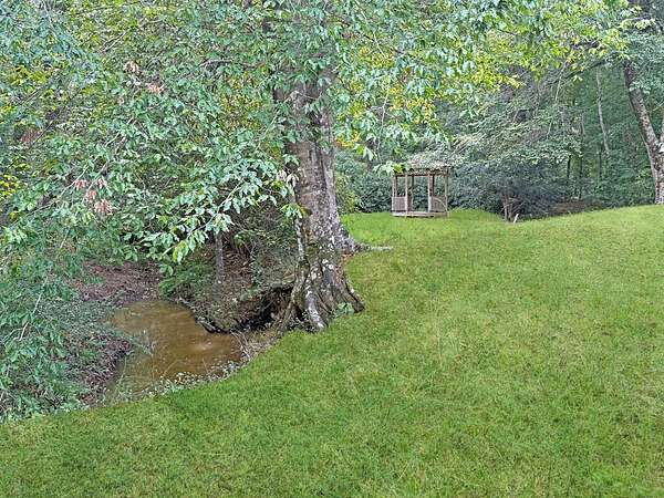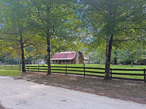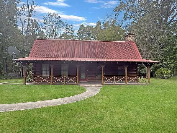 Beautifully crafted 3 bd 2.5 ba log home nestled on 2.5 acres. This cabin has both rustic charm and modern comforts. Step inside to find warm wood accents throughout. The living room features a large fireplace making it perfect for relaxing on cool evenings. The large kitchen has ample counter space and cabinetry. The primary bedroom is conveniently located on the main floor, complete with an en-suite bathroom and generous closet space. Upstairs, you'll find two additional bedrooms, a full bath, and even more storage. Enjoy peaceful mornings or entertain guests on the expansive covered back porch, overlooking your private acreage. A tranquil creek borders the property, adding to the natural beauty, and a charming gazebo offers a quiet retreat or entertaining space. A storage building is included. Whether you're looking for a full-time residence or a weekend getaway, this log home offers privacy, space, and rustic elegance—just waiting for your personal touch.