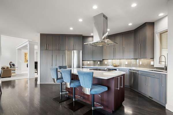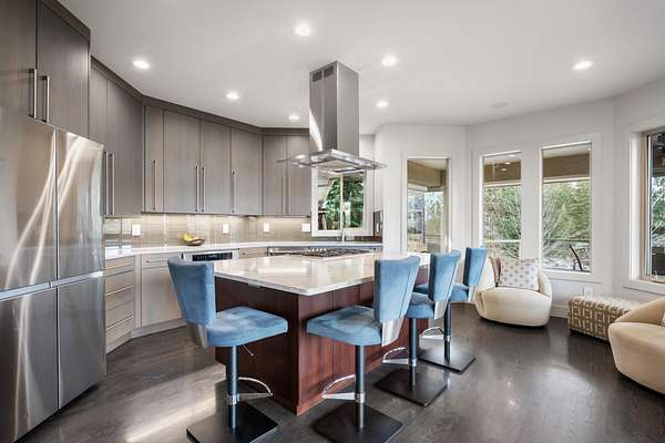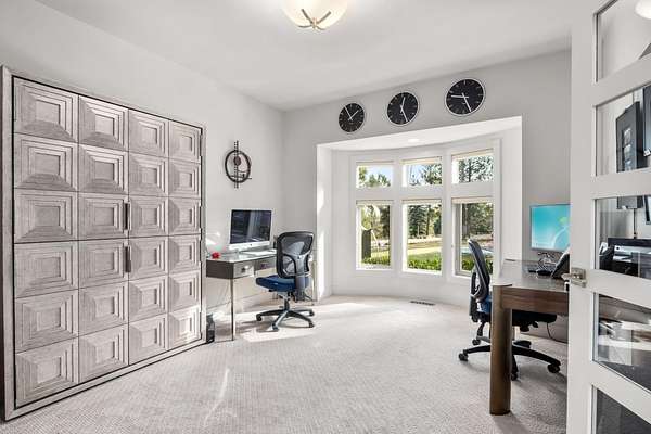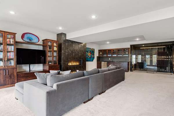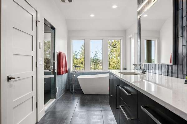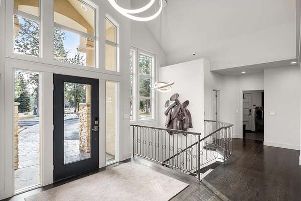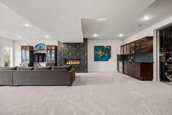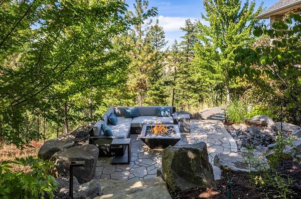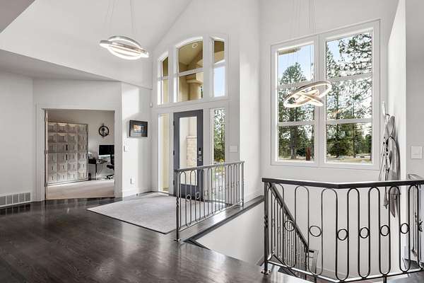 This stunning 5,347 sq. ft. rancher with full daylight walkout basement was completely remodeled in 2019 and offers upscale living at every turn. Featuring solid oak hardwoods, a chef's kitchen with quartz slab counters & stainless appliances, and a formal living room with gas fireplace. This one-owner home is designed for both comfort and style. The primary suite boasts a spa-like bath and massive custom walk-in closet, while the lower level stuns with a family/rec room, climate-controlled wine cellar, wet bar, three bedrooms (one with private patio), and walkout access. Outside, enjoy tiered patios, a full outdoor kitchen, and beautifully landscaped grounds--water feature, fire pit and picturesque sunset views. Three car garage with EV charging station and the home is generator ready-all in one of Spokane's most prestigious communities. Truly a must-see.