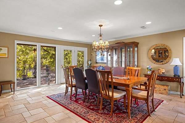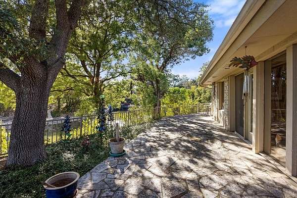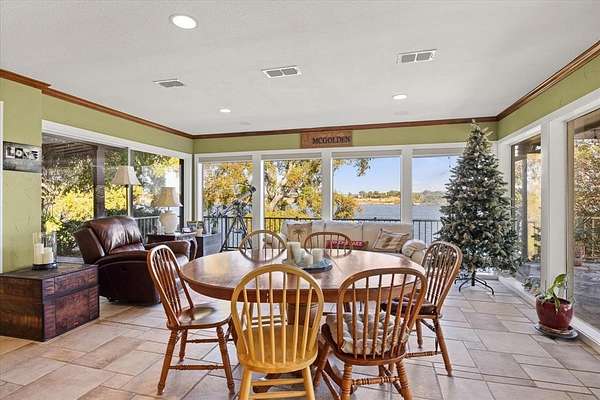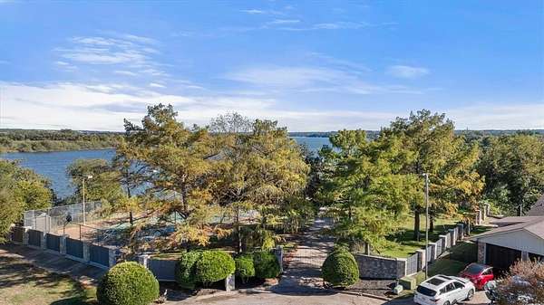 Perfect for relaxed living or entertaining, the home showcases two spacious primary suites, an updated chef's kitchen, and an inviting living area that flows effortlessly outdoors. The extensive patio area is the ideal spot to unwind or host guests, complete with an outdoor fireplace and a refreshing in-ground pool. Whether you're sipping coffee at sunrise or enjoying evening breezes at sunset, the setting simply doesn't disappoint. Sitting on 1.51 acres at the end of a quiet cul-de-sac, this property promises peace, privacy, and plenty of room to roam. With over 600 feet of prime water frontage, a deep-water boat dock, and space to expand it, lake living has never been easier--or more fun. In additional, this property consists of 4 lots. With a slight modification of the garage and the tennis court removed, 2 lots could be sold off separately. 65 roof mounted solar panels provide for drastically reduced electric bills! Bonus: You're tucked away just enough for solitude but still perfectly placed close to local attractions and conveniences. So whether you're seeking sanctuary, ready to entertain, or just want to collect a few adventurous fish tales or family boating fun,, this home is ready when you are.