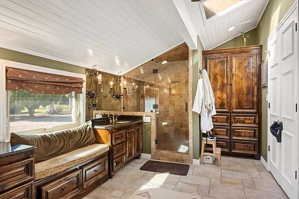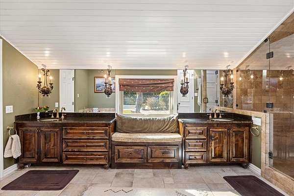 - Built-In Features, Built-In Wine Cooler, Cable TV Available, Cathedral Ceiling(s), Decorative Lighting, Double Vanity, Eat-In Kitchen, Flat Screen Wiring, Granite Counters, High Speed Internet Available, In-Law Suite Floorplan, Kitchen Island, Natural Woodwork, Pantry, Second Primary Bedroom, Vaulted Ceiling(s), Walk-In Closet(s), Wet Bar