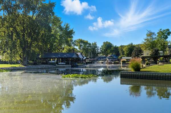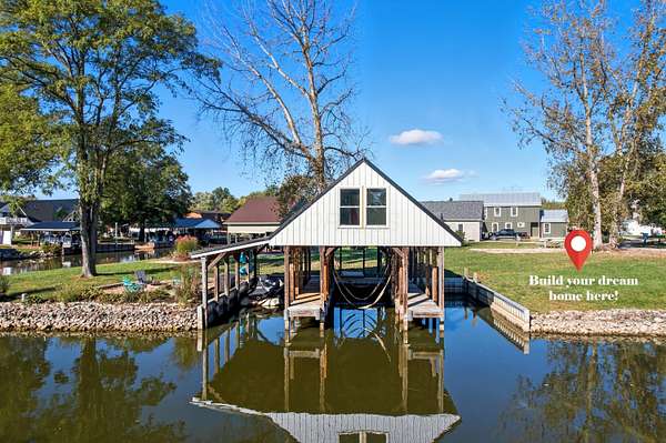 Incredible opportunity to build your dream home on Buckeye Lake! Tucked away in one of the lake's best-kept secrets, this beautiful pocket of homes offers the perfect setting for your custom build. Enjoy peaceful surroundings, scenic views, and a true sense of community among neighboring waterfront estates. This rare .21-acre waterfront lot features approx. 150' (+/-) of water frontage on a deep canal just west of Heron Bay, offering quick access to the main lake. Includes a private dock with aluminum sea wall, 3 oversized slips (2 covered- 1 with electric boat lift- & 1 uncovered, 2covered jet ski pads remaining), and a charming boathouse with new black aluminum roof, white siding, and a freshly finished interior with electric. A cozy fire pit area adds the perfect touch for relaxing evenings by the water. Utilities in place-electric & water on site, sewer available. Recent updates include new roof & siding, interior walls, insulation, lighting, flooring, cabinets, countertop, landscaping, fire pit, ski lifts & gravel driveway.