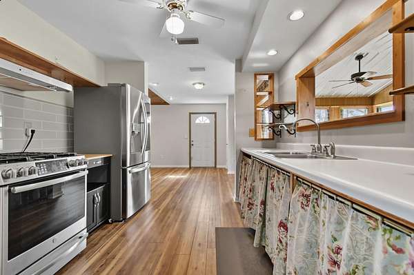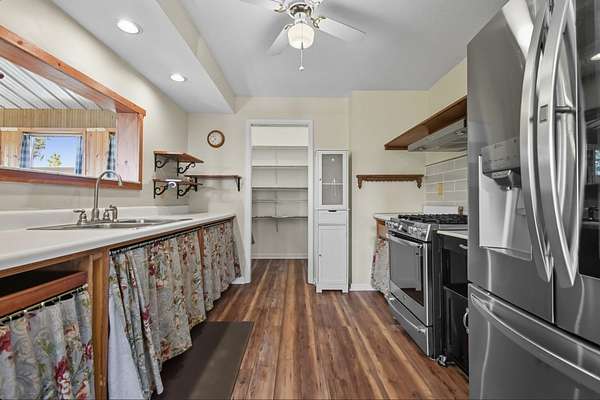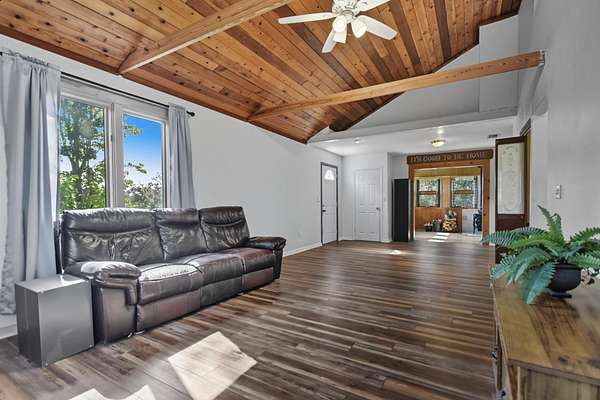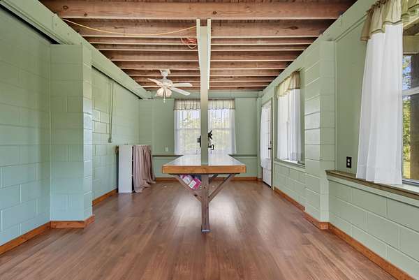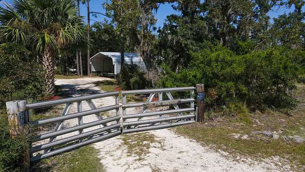 Discover a truly unique property with this two-story block home featuring two separate full living quarters, all nestled on 2 high and dry acres. With 4 bedrooms and 2 full baths and a half bath that includes approximately 1,910 square feet (H&C), 2,700 square feet of living space and a total of 3,200 under roof this versatile home offers endless possibilities for multi-generational living, guest accommodations, or rental potential. The lower level features 3 bedrooms, 1.5 baths, a full-size kitchen with an electric stove, laundry area, back deck, and a comfortable living space. Upstairs, the second living area offers an open floor plan with exposed beams, a cozy wood-burning stove, abundant natural light, 1 bedroom, updated kitchen appliances, wraparound porch, and a spacious living room. Outside, the property is filled with charm, featuring a gated entrance, blooming flowers, storage sheds, chicken coops, and several small barns. Conveniently located just 5 miles from the Gulf and only 25 minutes from Perry, you can enjoy nearby shopping and dining while embracing the peaceful lifestyle Taylor County is known for. From some of Florida's best flats and offshore fishing to renowned scalloping waters, this area is a dream for outdoor enthusiasts and anyone looking to enjoy the beauty of quiet coastal living.