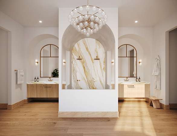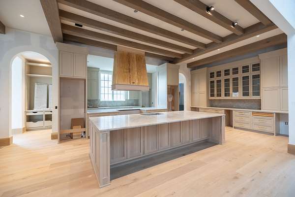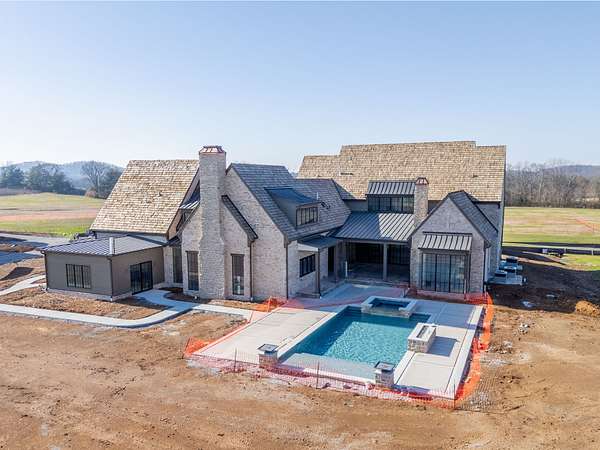 Incredible new construction by Trace Construction on a pristine 1.74-acre lot in the gated community of Sawyer's Creek. Perfectly positioned between the charm of Leiper's Fork and the vibrancy of historic Downtown Franklin, this home offers a lifestyle of elegance, wellness, and connection. Every detail has been carefully curated, beginning with European white oak engineered hardwood flooring, 10" white oak baseboards, and solid white oak doors stained to match. Custom ArcusPlaster treatments bring subtle texture to the main-level walls, creating an atmosphere of quiet sophistication. The kitchen is a true showpiece, featuring a floating vent hood, quartzite countertops, and full-height backsplash. Top-of-the-line appliances include a Wolf 48" dual fuel range with griddle, Subzero refrigerator and freezer columns, Cove integrated dishwasher, Wolf microwave drawer, built-in filtered water chiller, and Scotsman ice maker. Multiple Zephyr beverage centers are strategically placed throughout the home, including the kitchen, bonus room bar, wellness room, morning bar, and even the primary suite closet. The two-story great room makes a statement with an Isokern firebox, ArcusStone plaster mantle, and a temperature-controlled glass-enclosed wine room beneath the staircase. The main-level bonus room, with its vaulted ceiling, beams, and sliding service window, offers a full bar and a private whiskey room, while the study blends beauty and function with custom shelving, uplighting, and library lights. Designed for total well-being, the main-level wellness room includes rubber flooring, an infrared sauna, cold plunge, beverage center, and water station. The vaulted primary suite is a retreat with white oak beams, lighting control, and spa-inspired bath featuring reeded cabinetry, soaking tub, steam shower, and Arcus plaster accents. The closet rivals a boutique with an island housing a washer and dryer, and makeup vanity.