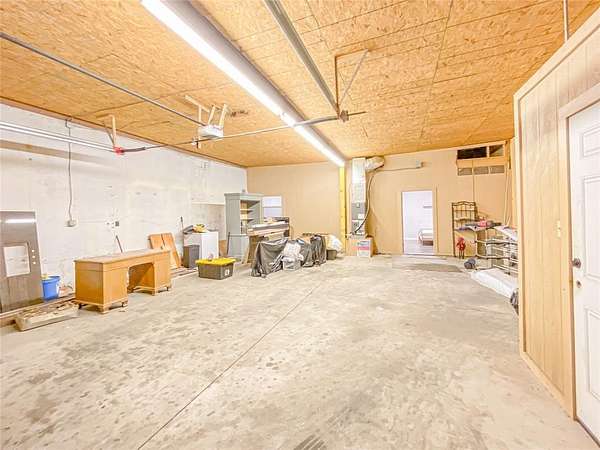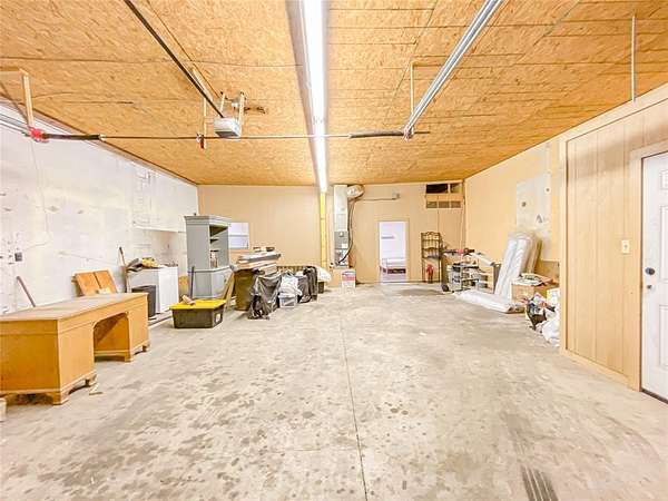 Versatile heavy commercial zoned property offering 3,250 square feet split between two functional spaces. Each side features its own garage door, with a shared center access point, making it ideal for multiple uses or tenants. The left side includes office space, a kitchen, and a bathroom with a shower, perfect for administrative or client-facing operations. The right side offers a more industrial setup, complete with a bathroom featuring a toilet and sink. There is also a shared fenced yard in the back. This flexible layout allows an owner to occupy one side while generating income by leasing the other. Located on a busy street with great visibility, this property is well-suited for a variety of commercial or industrial uses.