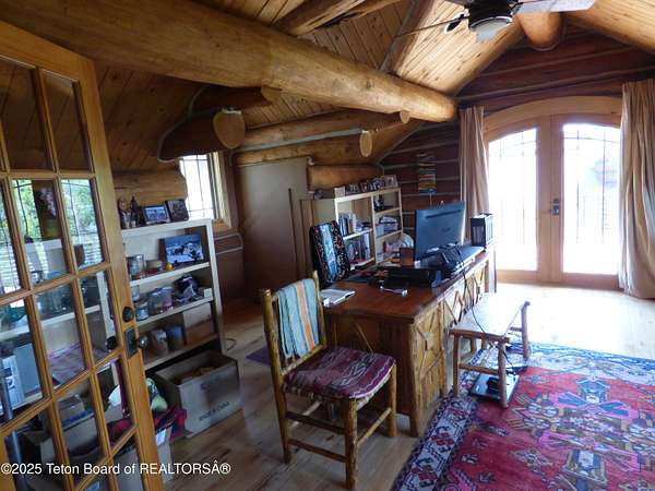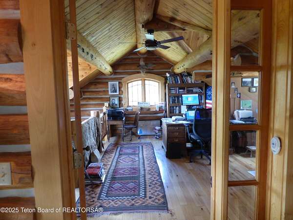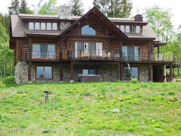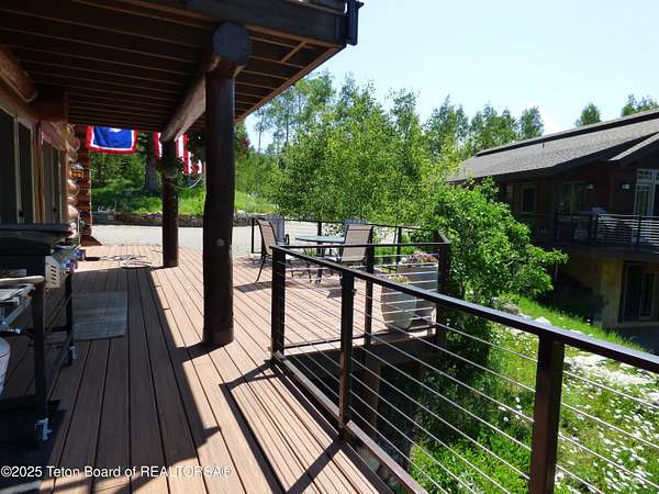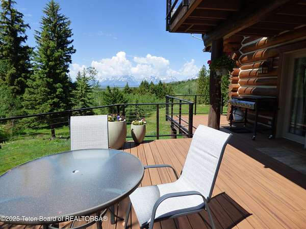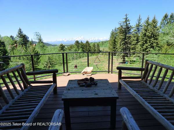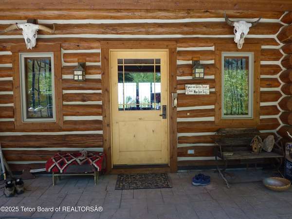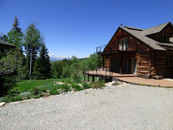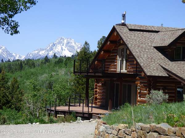 At the entrance to Buffalo Valley this Teton Wilderness classic log home on 3 levels & nearby guest home on 2 levels are set on 1.89 acres in beautiful pine and aspen trees with USFS access. BIG views of the entire Grand Teton Range & Jackson Hole's Snake River Valley from each window & the wrap around decks. Access across GTNP to USFS lands to 2 homes. Incredible wildlife viewing: Buffalo River & forests of Teton Wilderness - buffalo, elk, deer, moose, waterfowl & raptors abound, with occasional grizzlies, wolves, lions, black bear, fox, coyotes. This solitude with rare entire Teton Range & JH valley views & abundant wildlife is just 45 min. from Jackson Hole at the N entrance to GTNP near historic Moran. Colter Bay, Signal Mtn, Turpin Meadows, just minutes away. A must see property.