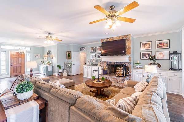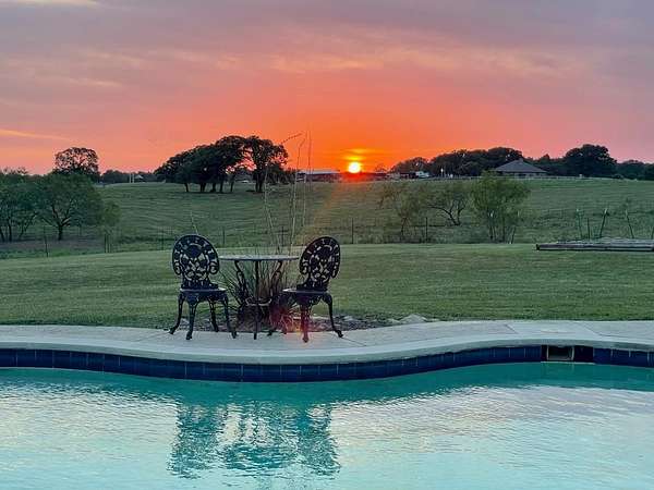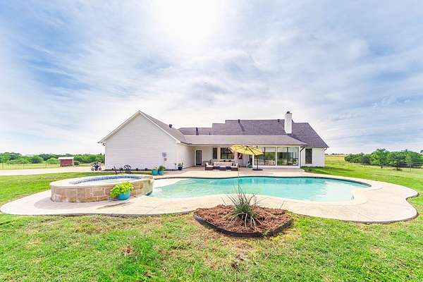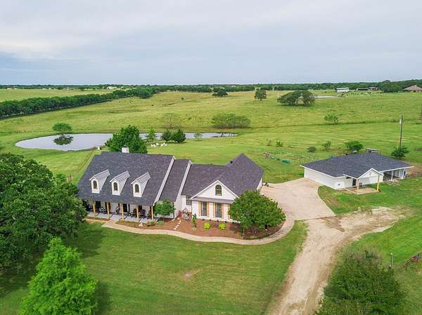 ESCAPE THE EVERYDAY & STEP INTO YOUR VERY OWN SANCTUARY, a blend of tranquility and modern farmhouse charm spread across 30 rolling acres. Imagine waking up to quiet mornings on the porch where the air is fresh and the world feels miles away. The main residence is warm, inviting, and recently renovated, featuring a private master suite, oversized walk-in closet, and relaxing en-suite bath... a true retreat after a long day. And don't miss the attic staircase in attached garage, it leads to a spacious, light & bright unfinished attic space. Outside, the magic further unfolds, creating an incredible backdrop for relaxing, entertaining or spending time with family and friends. There's a stocked pond, large barn, and fenced & cross-fenced pastures perfect for horses, cows, chickens, or other livestock. You'll have endless room to breathe, roam, and reconnect with nature, all while watching fresh crops, gardens, and flowers grow. Gather around the inground pool with hot tub and sunny baja shelf, perfect for long, lazy afternoons or an evening under the stars. As night falls, you'll be treated to a daily masterpiece of incredible sunsets that paint the sky over the gentle, rolling hills. Need space for a passion project, home office, or private visitors? The detached workshop features comfortable, unfinished guest quarters with a full private bath, offering the ideal retreat for visitors or a quiet spot for your creative endeavors. Here, life intentionally slows down. Whether you're strolling pastures, feeding livestock, or just soaking up the wide-open skies, this property offers a beautiful combination of comfort, space, and serenity.
