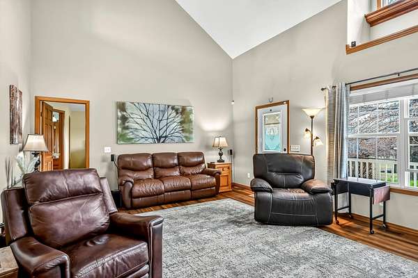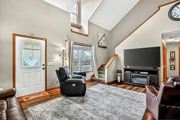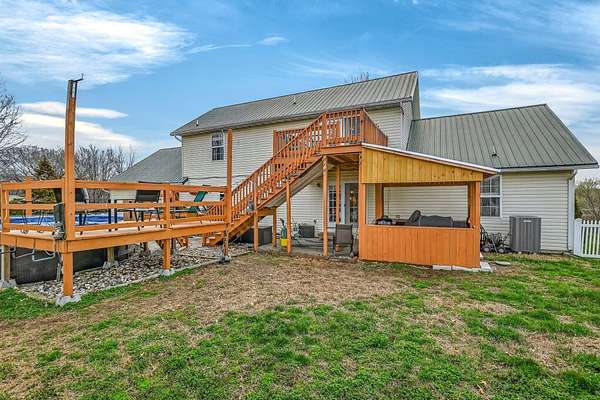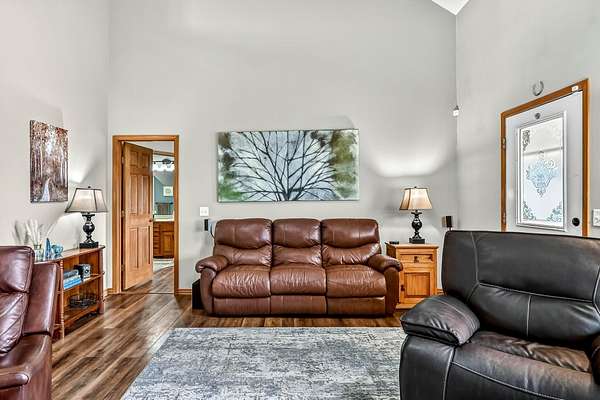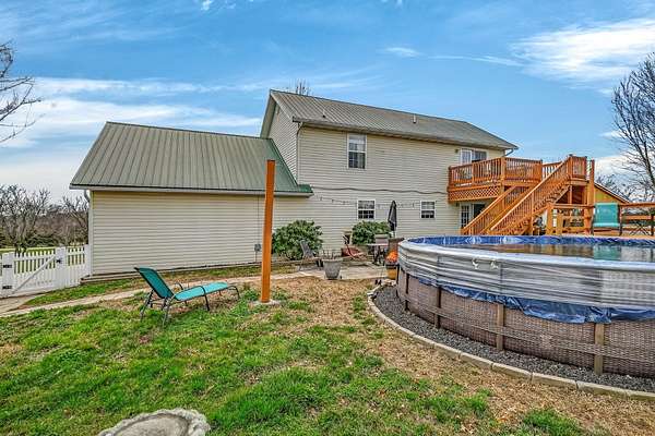 Set on 3.25 picturesque acres, this charming 1.5-story home offers the perfect blend of country living and everyday convenience. Featuring 4 bedrooms, 3 full bathrooms, and a 30A--40 heated and cooled shop, the property is ideal for those needing space both inside and out. The shop includes three garage doors and 220 wiring, making it perfect for hobbies, projects, or extra storage.A darling covered front porch welcomes you and provides a peaceful place to take in the surrounding countryside. Inside, the home feels bright and inviting with abundant natural light, newer laminate flooring, and a dramatic two-story ceiling with a dormer that enhances the spacious living room.The kitchen offers real wood cabinetry, stainless steel appliances, a breakfast bar, and a dining area. The main floor features three bedrooms, including a comfortable primary suite with a private bath complete with dual sinks, a jetted tub, and a walk-in shower.Upstairs, you'll find an additional living area, the fourth bedroom, a full bathroom, and a sheetrocked room currently used for storage, offering flexibility for a home office, hobby room, or additional storage space.Outdoor living is just as appealing with upper and lower decks, including a covered deck ideal for grilling, plus a patio for relaxing or entertaining. The backyard also features an above-ground pool with deck, a storage shed, and a partially fenced yard, perfect for pets or play.Enjoy the peaceful, private setting while still having easy access to the highway, making this property the perfect balance of tranquility and convenience.