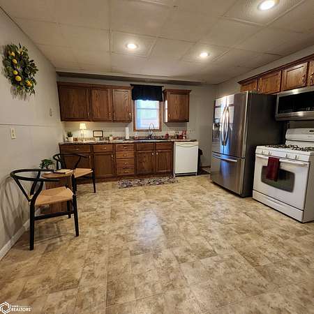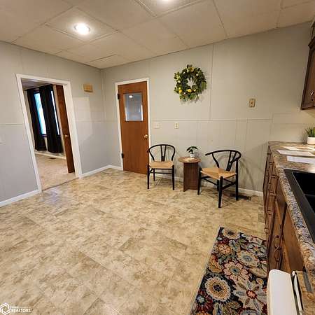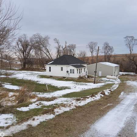 Location, location, location! Don't miss this 2-bed, 2-bath acreage with all living on the main level conveniently located on Hwy 59, 5 1/2 miles north of Harlan and situated on 4 acres of land! An added bonus is the 34 x 44 pole building w/3 different sizes of doors and plenty of extra space! New furnace and A.C (June 2022), New roof (June 2025) and carpet replaced (2021). Enjoy the remodeled kitchen and bath (2016), 2 bedrooms, laundry area and front entry/flex room which are all housed on the main level. The partially finished basement houses a large Family/Rec. Room with pool table, an additional non-conforming bedroom w/window that could be converted to egress window. The basement also has a concrete block shower, toilet and water heater room as well as a bonus room which could become an exercise area, bedroom or a storage/utility area. Another surprise is an enclosed stairway from the basement to an additional south ground level exit/entrance. Pole building has concrete floor, electrical outlets, LED overhead lighting and wood burning stove. Septic system installed in 2017. This property is move in ready with an abundance of potential! Call for a showing ASAP!